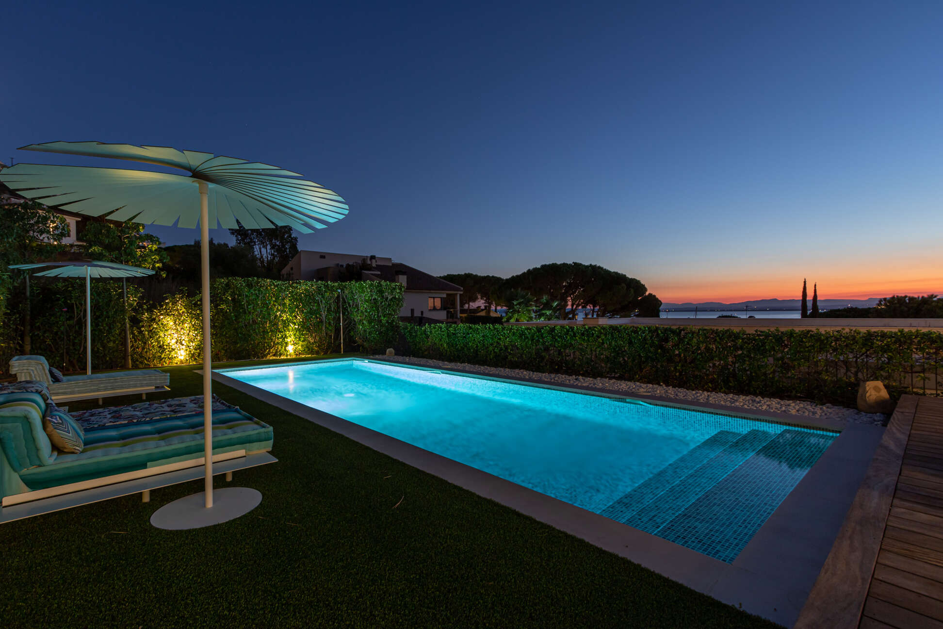 Gaudiu dels bells dies assolellats amb la seva magnífica piscina d'aigua salada, la casa de la piscina, magnífiques terrasses i patis ombrejats. Extres: Preinstal.lació per a la posada en marxa d'un ascensor, equipament amb persianes elèctriques de lamel·les amb comandament domòtic, llums de la cuina regulables, dos sistemes de calefacció: radial pel terra i climatització reversible per conducte i ambientació específica per a cada estada.