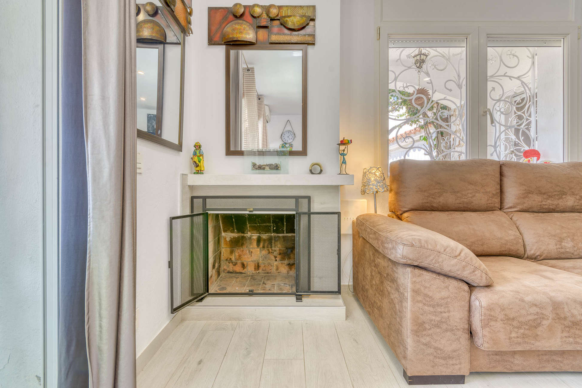 - Nice living-dining room, with view to the garden area and direct access to the pool. Elegant fireplace.