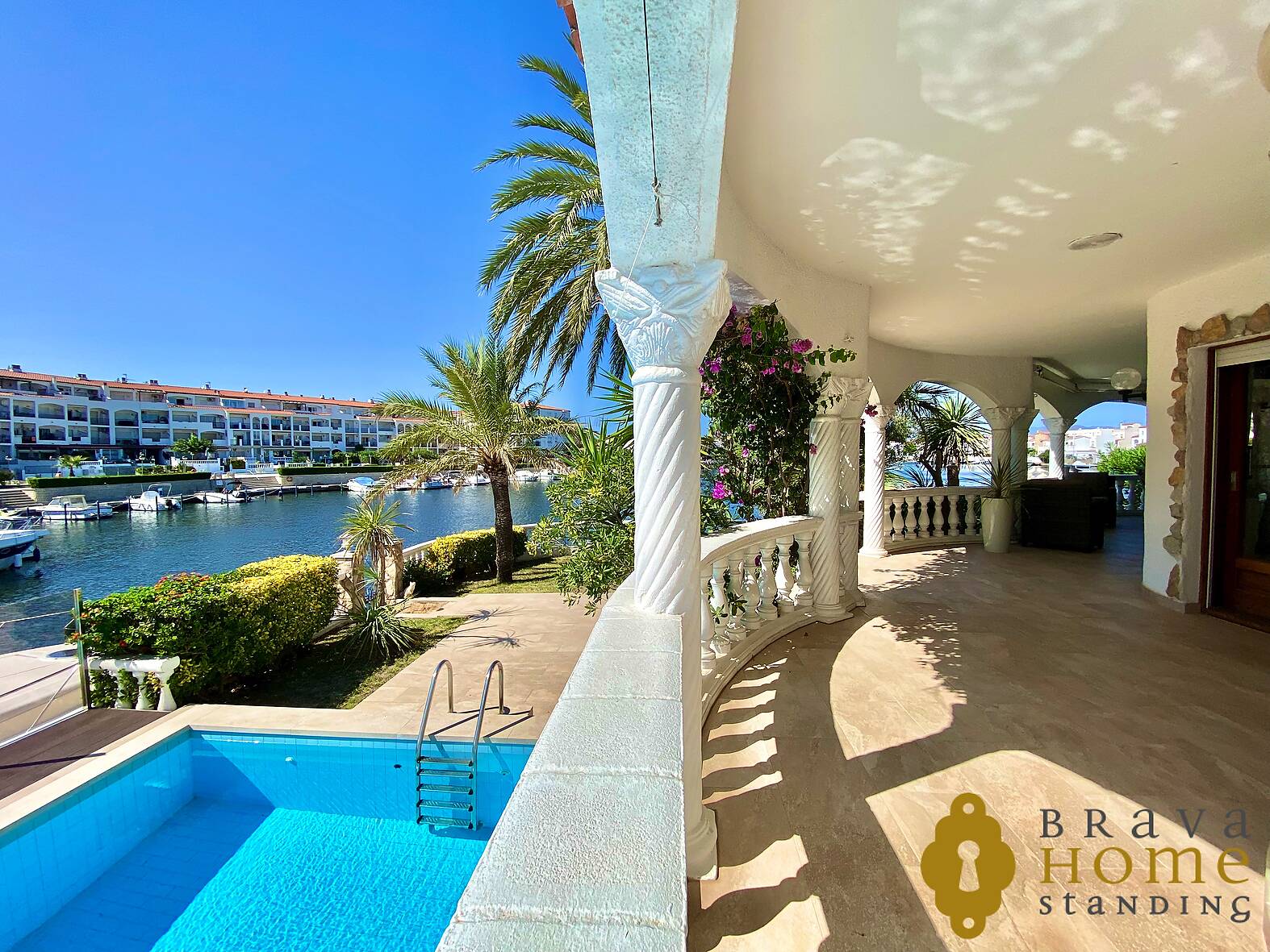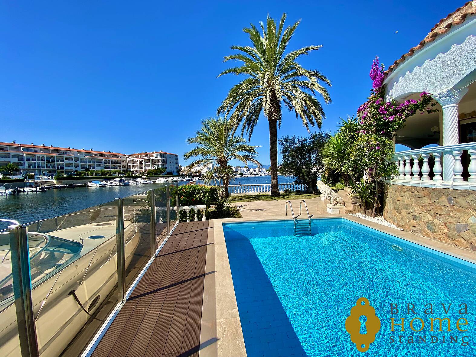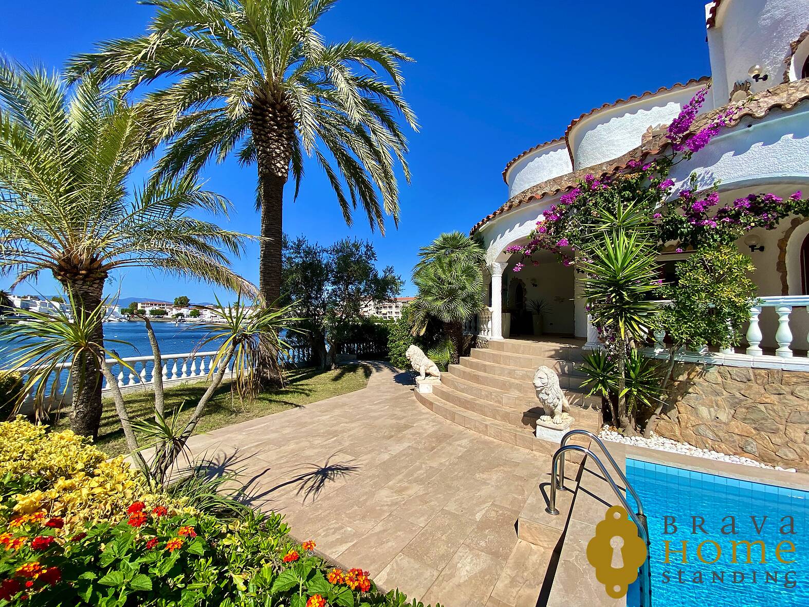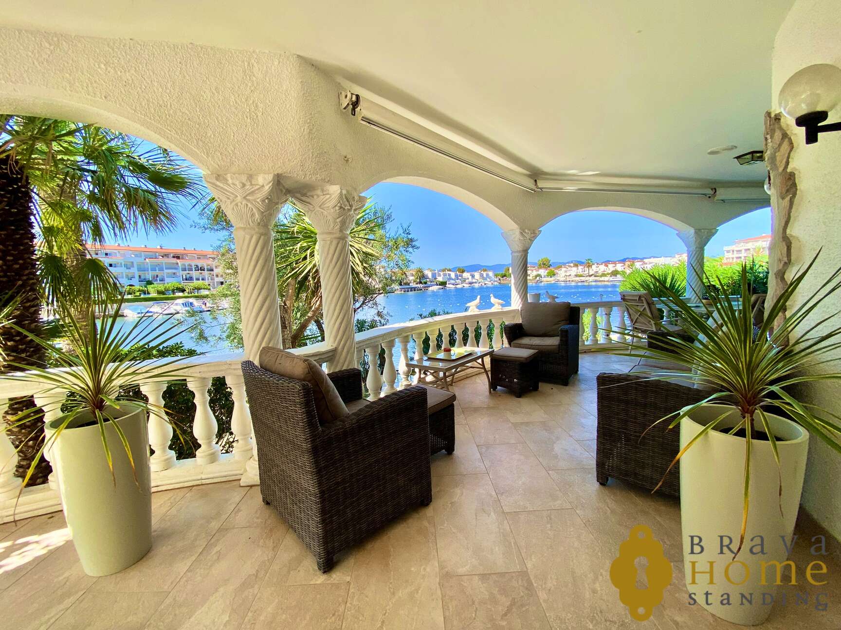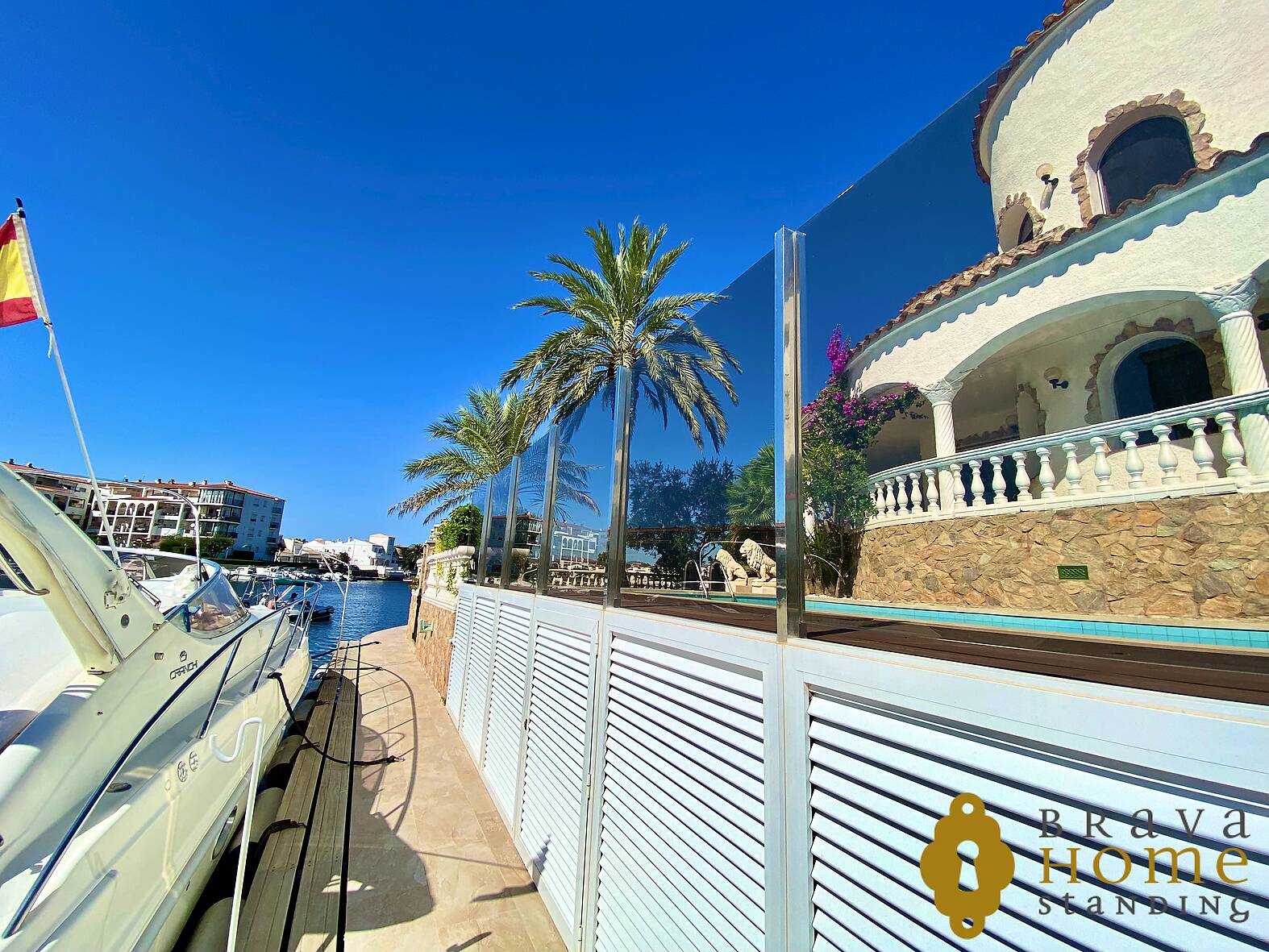 Magnificent house with double mooring for sale in Empuriabrava (Costa Brava).This beautiful house is located on Lake Sant Maurici with open views of the canal, the lake and the mountains.