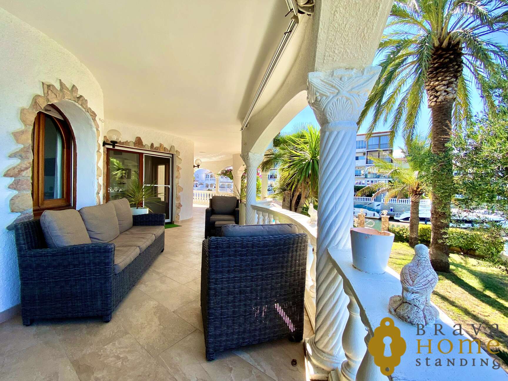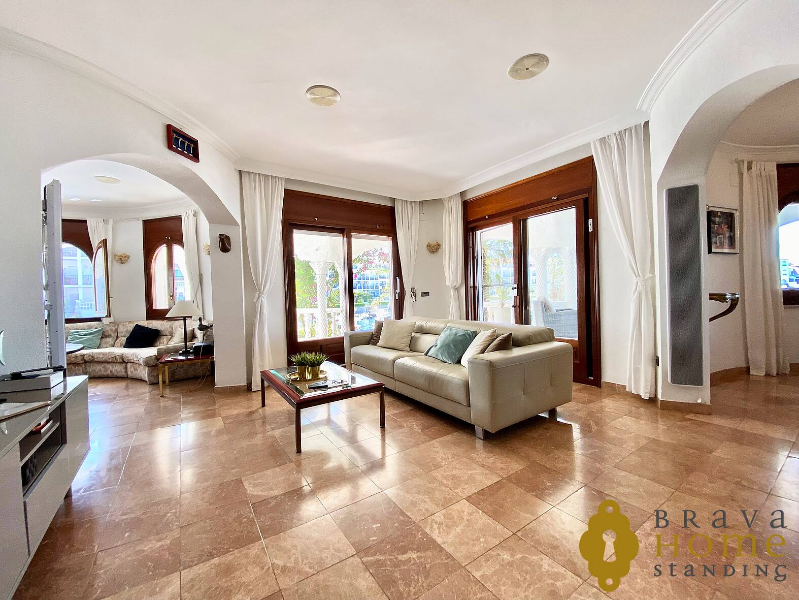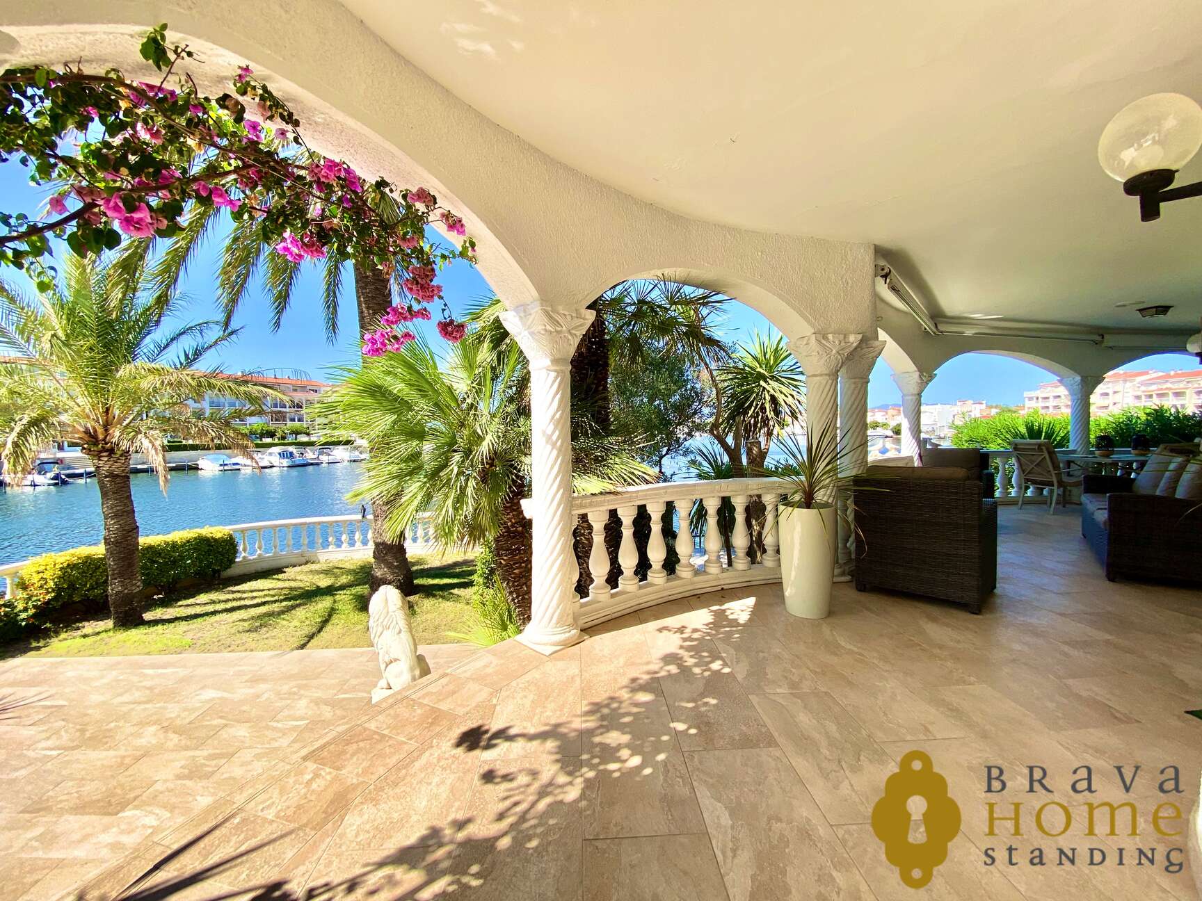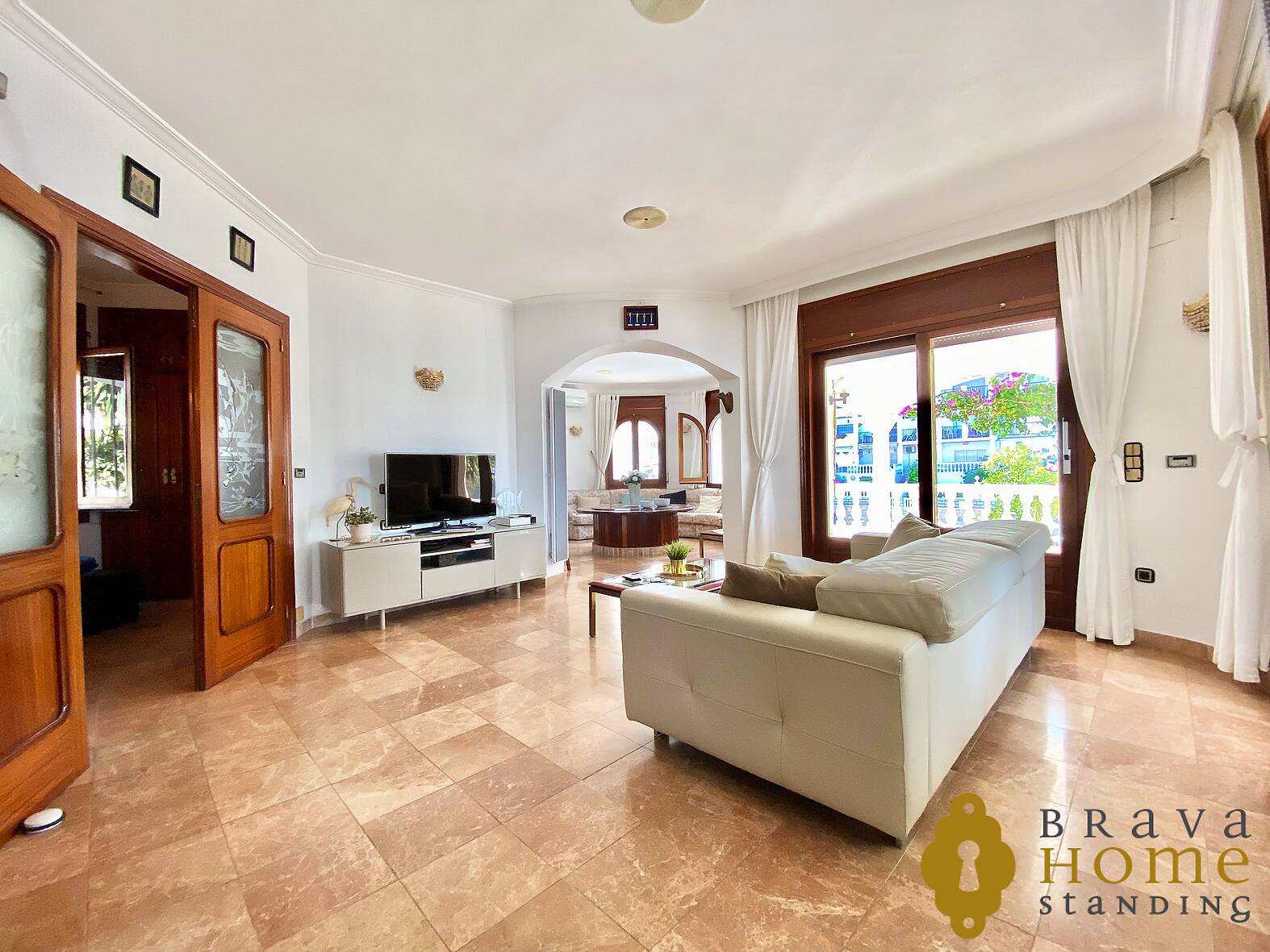 Magnificent house with double mooring for sale in Empuriabrava (Costa Brava).This beautiful house is located on Lake Sant Maurici with open views of the canal, the lake and the mountains.