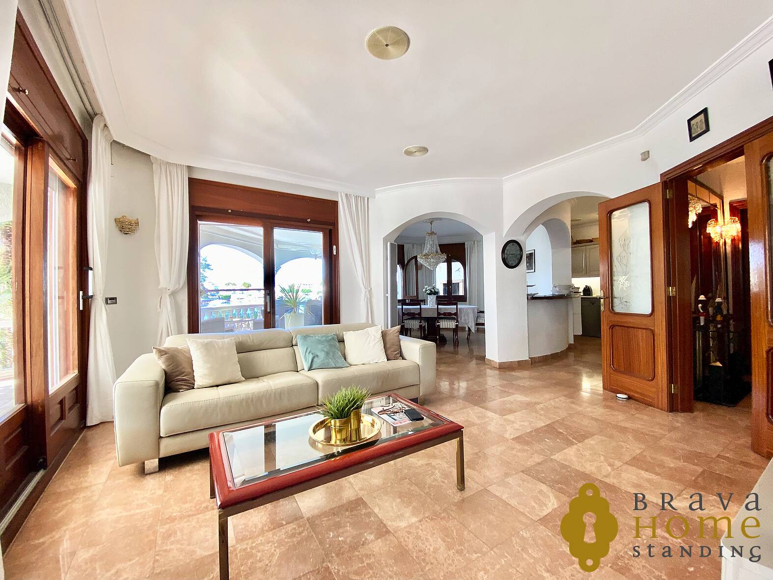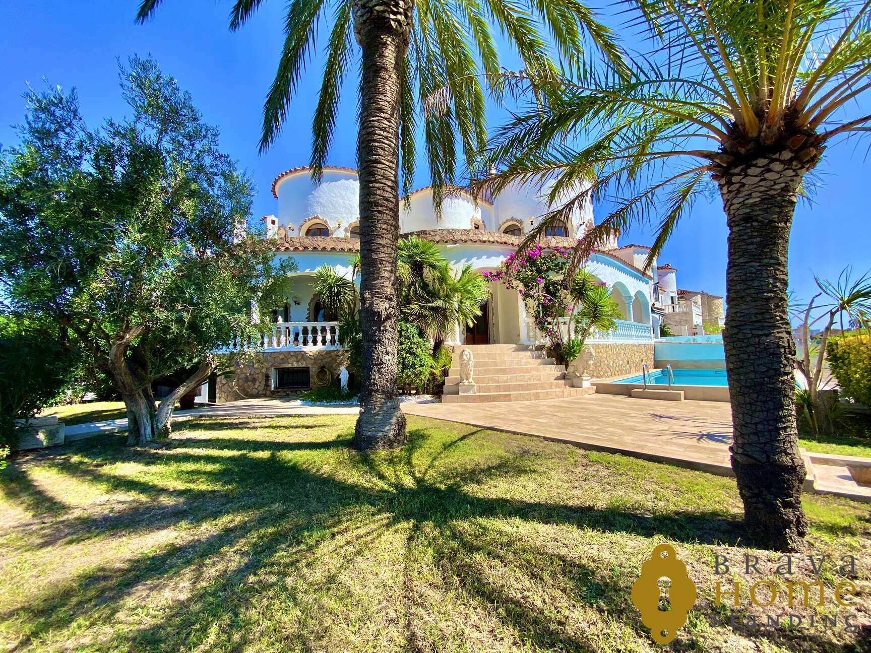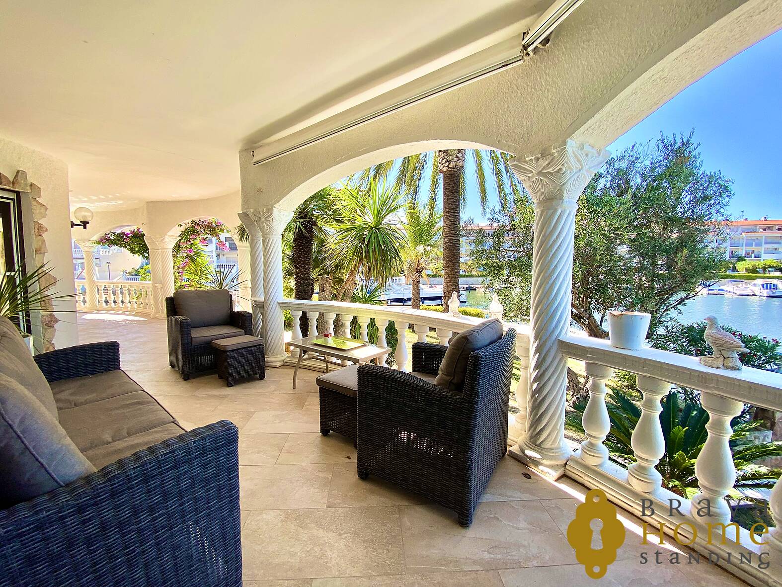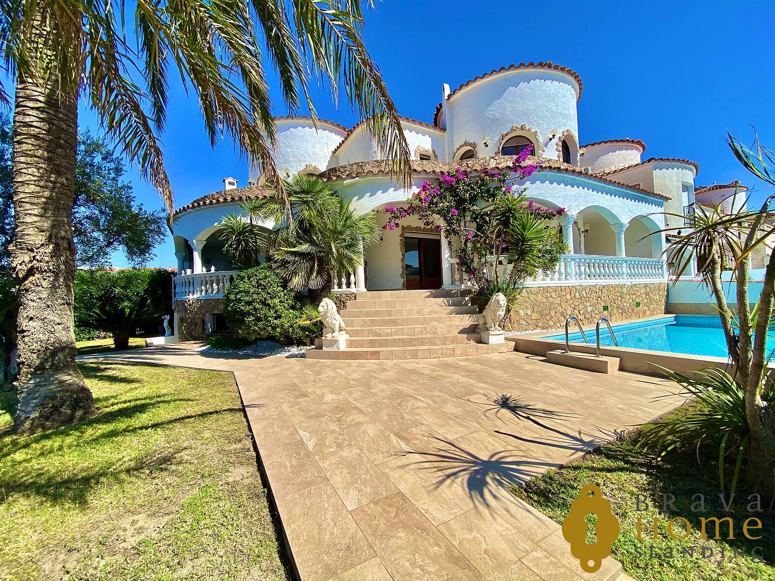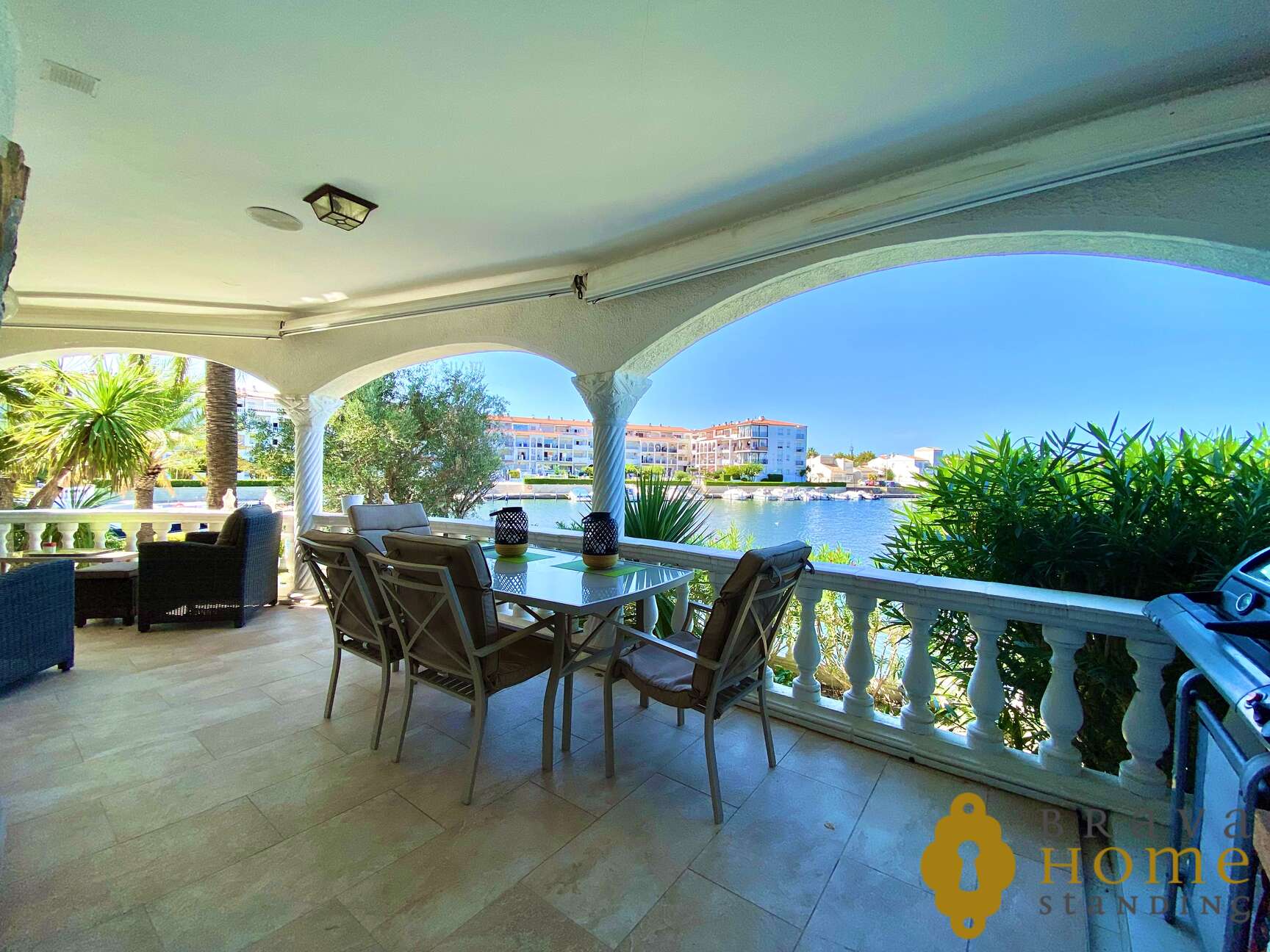 Magnificent house with double mooring for sale in Empuriabrava (Costa Brava).This beautiful house is located on Lake Sant Maurici with open views of the canal, the lake and the mountains.