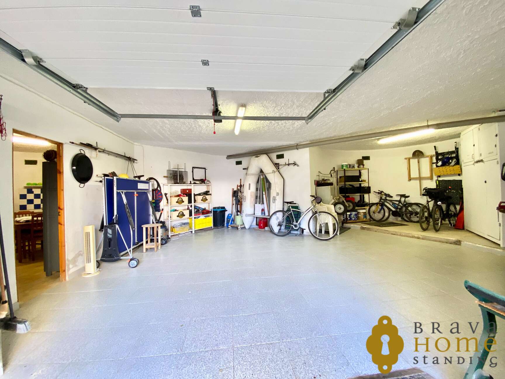 It consists on the ground floor of an entrance hall, a guest toilet, an American kitchen, a dining room and two lounge areas all opening onto the beautiful terrace with a view of the lake and the marina. The garden is planted with trees and has a beautiful 8 x 4m swimming pool, and access to the double mooring (12m and 15m).
