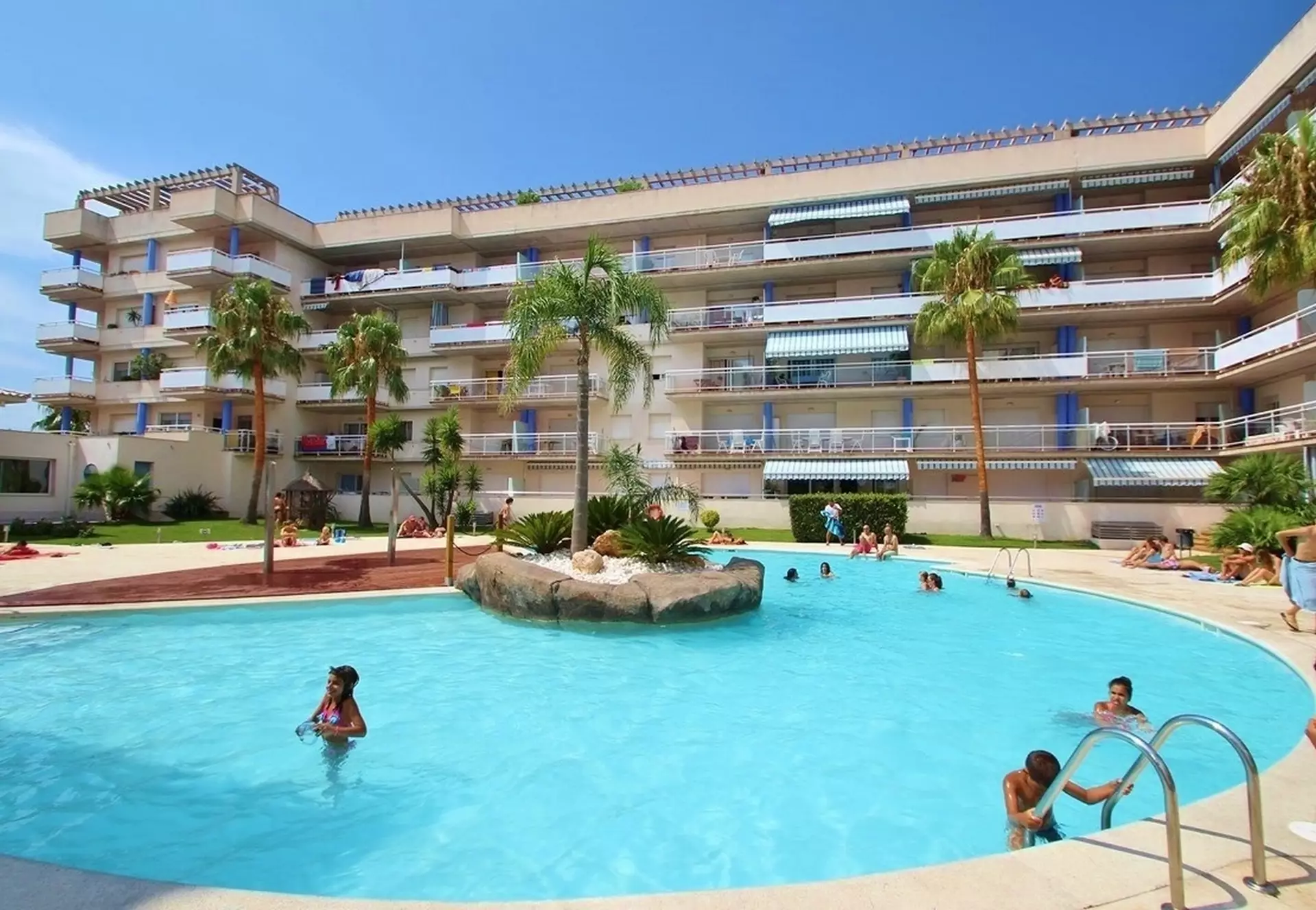Appartement à vendre à Roses, avec terrasse et vue sur la marina, dans un complexe résidentiel exclusif avec piscines et jardins.