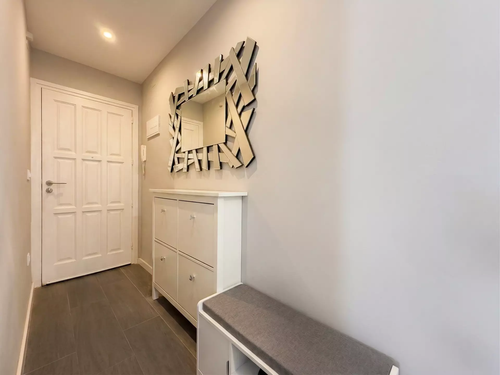 L’appartement a été conçu pour offrir confort et fonctionnalité. Dès l’entrée, un hall accueillant mène à un lumineux séjour avec salle à manger et cuisine américaine entièrement équipée, créant un espace de vie moderne et convivial. La partie nuit comprend une suite parentale avec placard intégré et salle d’eau privative, une deuxième chambre double spacieuse également avec placard intégré, ainsi qu’une seconde salle d’eau avec douche pour plus de confort.
