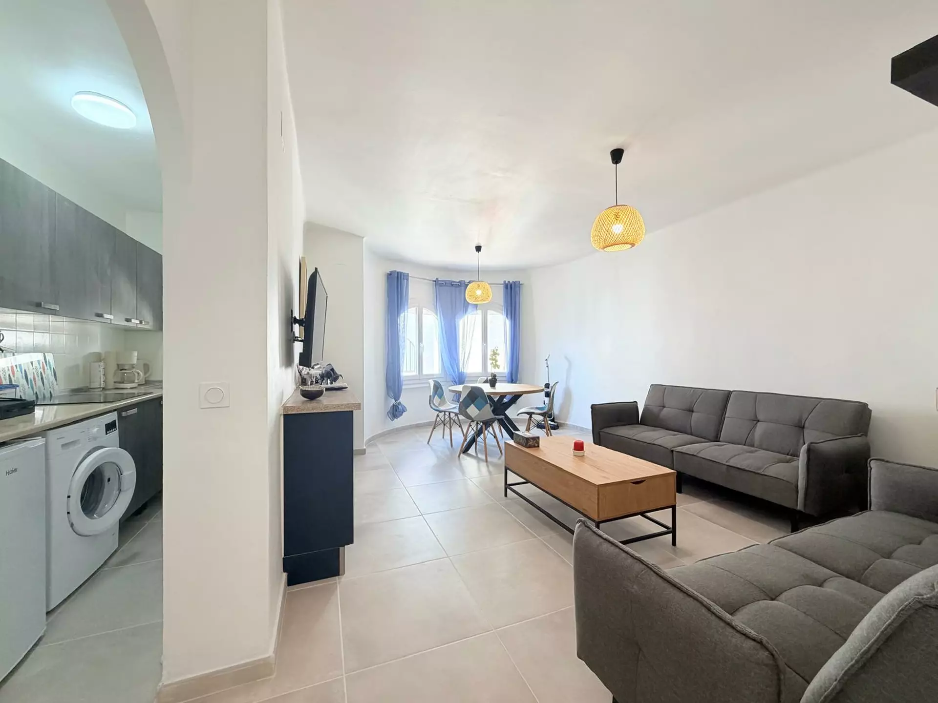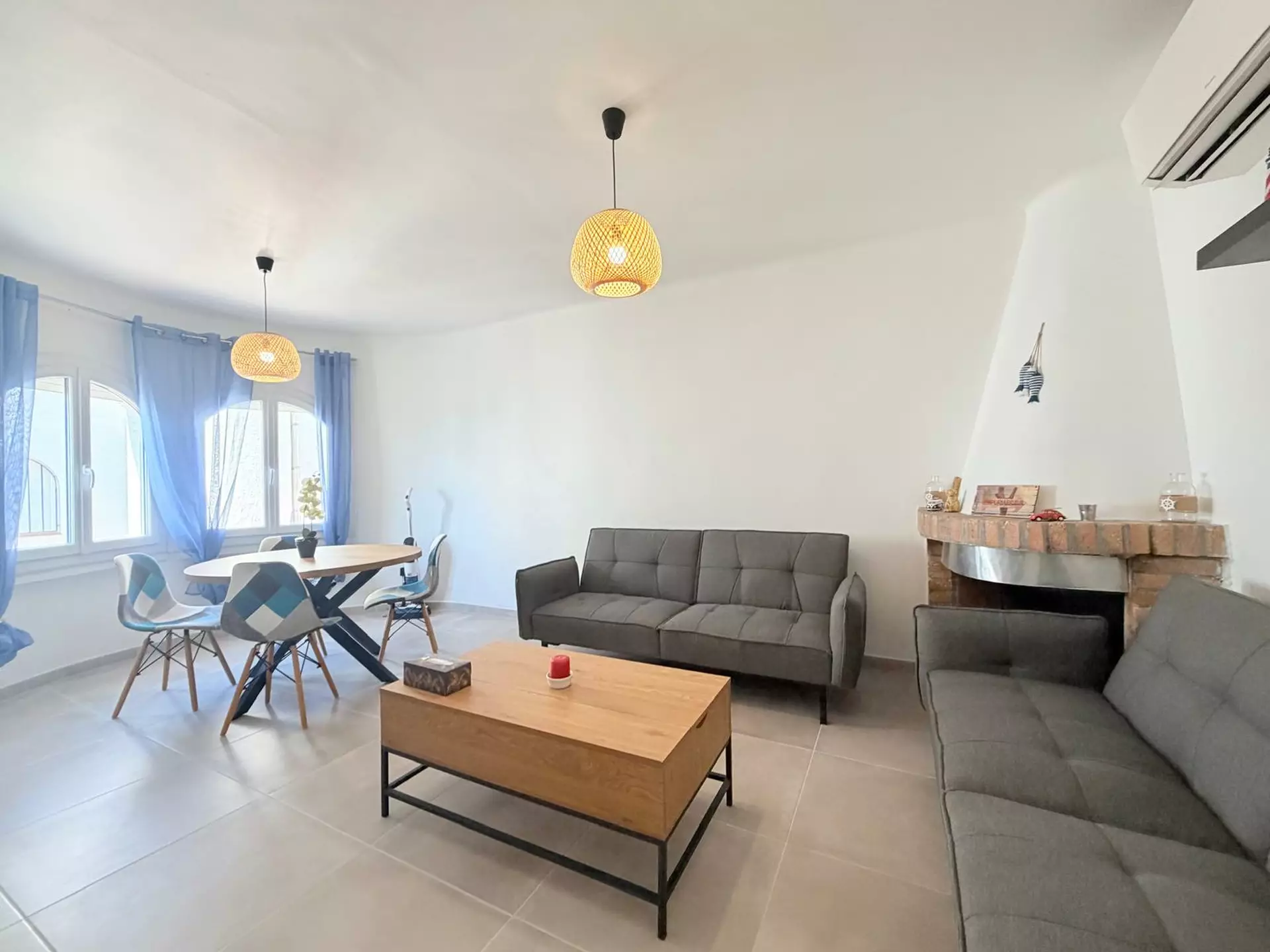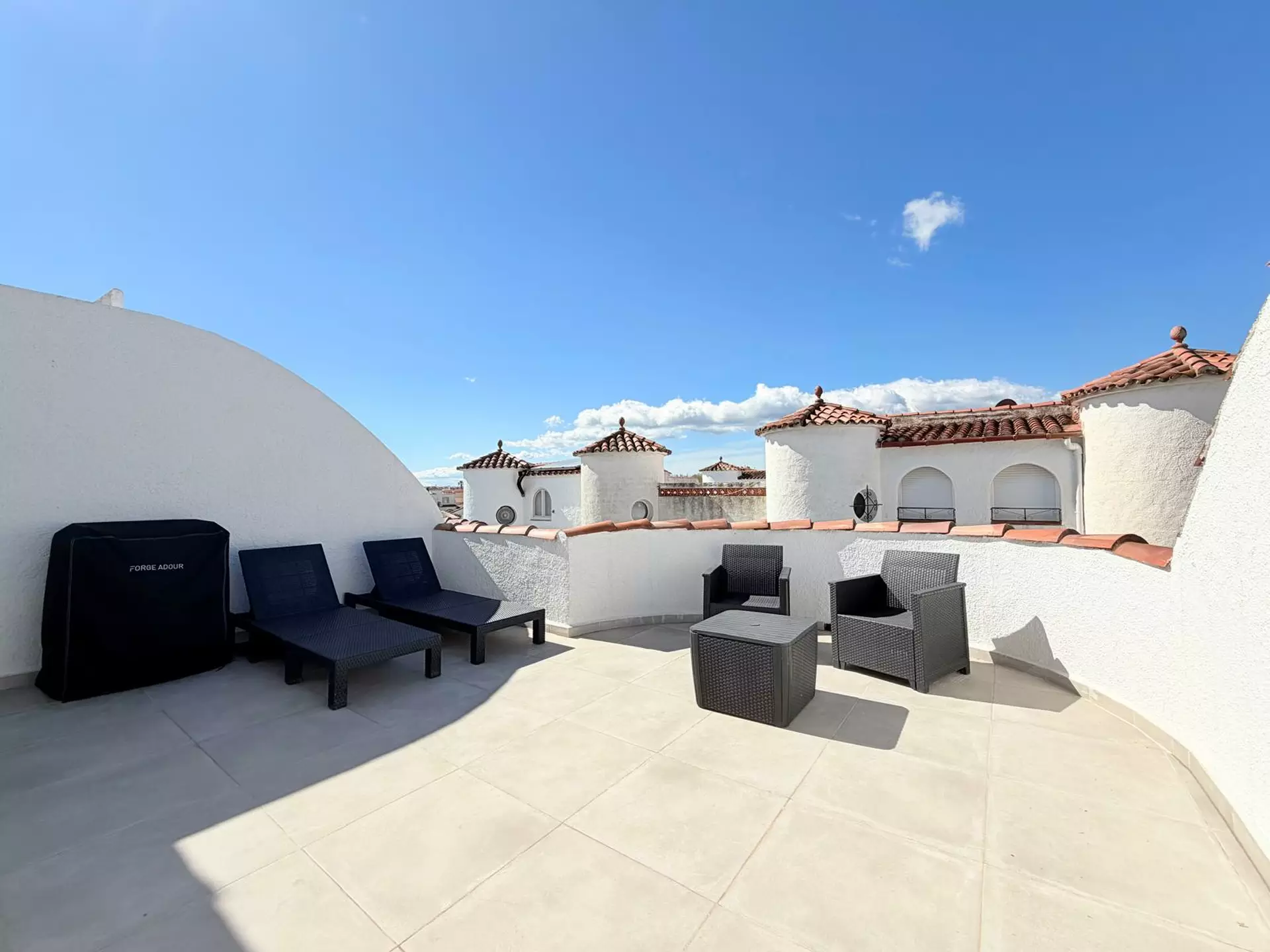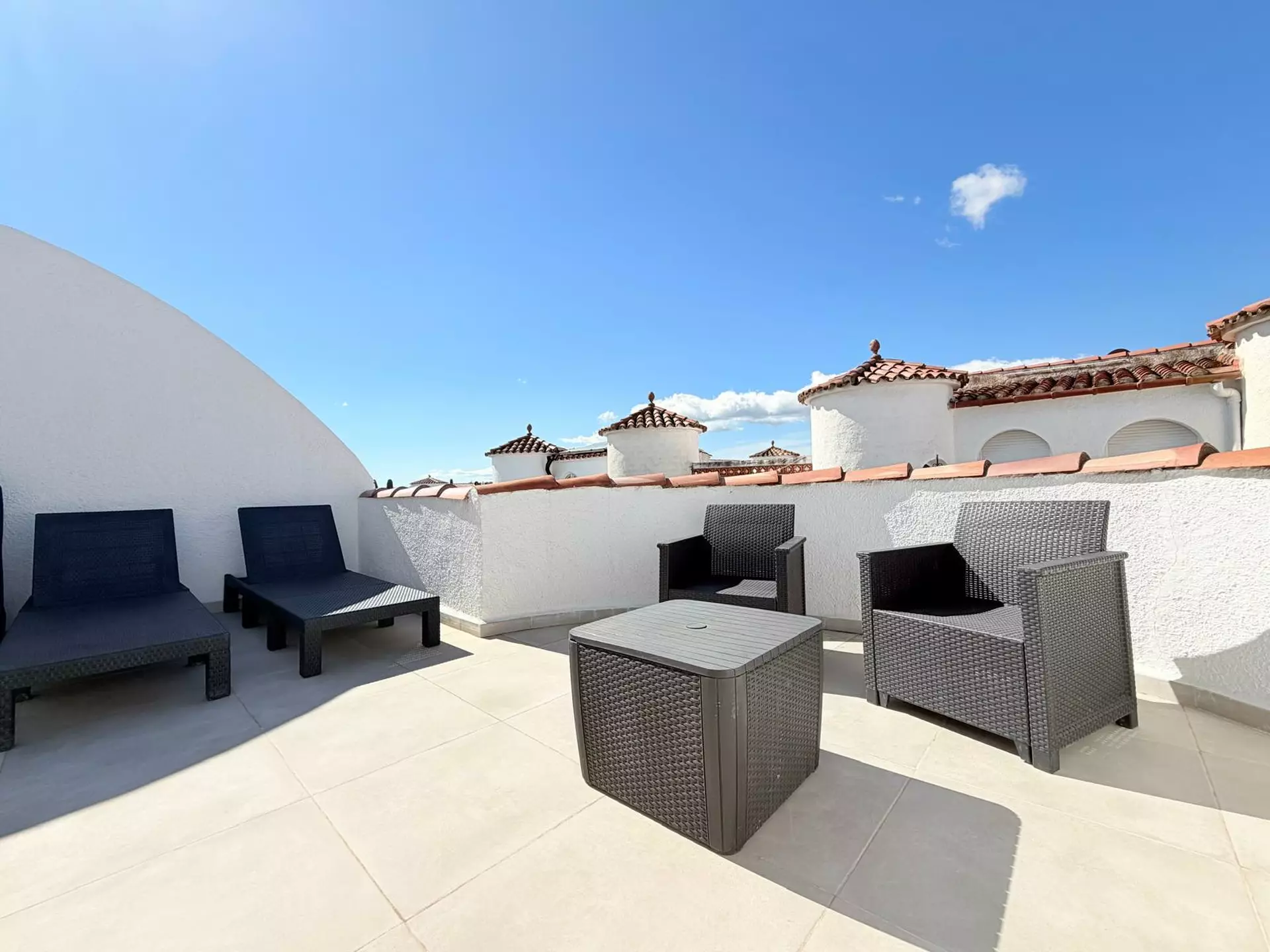 Située à Empuriabrava, cette charmante maison de pêcheur entièrement rénovée séduira les amateurs de confort et de cadre de vie privilégié. Bénéficiant d’une exposition sud, elle offre une luminosité remarquable tout au long de la journée ainsi qu’un amarrage privé de 7 x 2,70 m, idéal pour profiter pleinement des célèbres canaux de la région.La maison se déploie sur trois niveaux harmonieusement agencés. Dès l’entrée, le rez-de-chaussée accueille un espace spacieux et fonctionnel desservant deux chambres confortables, dont l’une s’ouvre sur une agréable et grande terrasse privative, parfaite pour des moments de détente en toute intimité. Une salle d’eau moderne complète ce niveau.