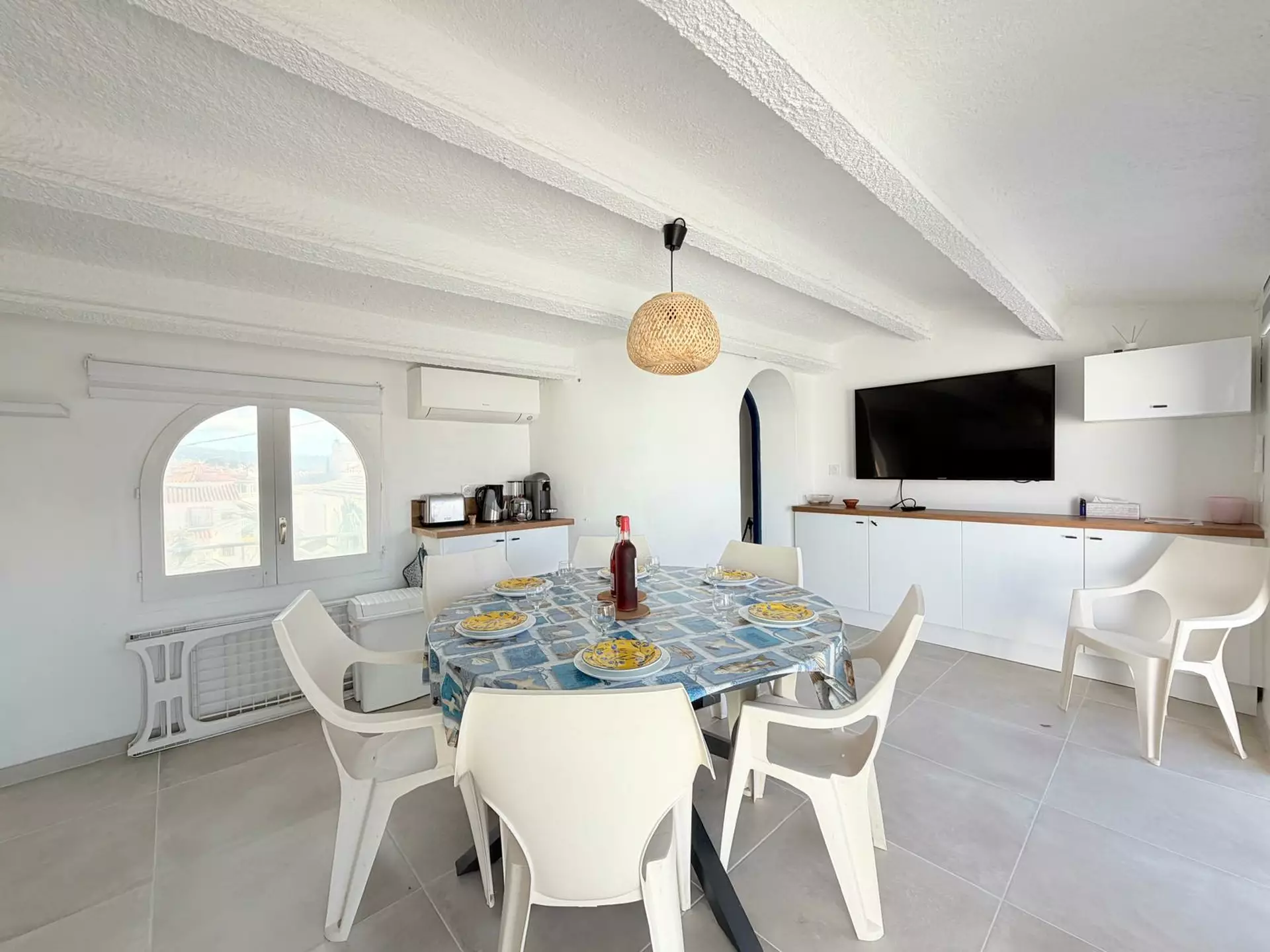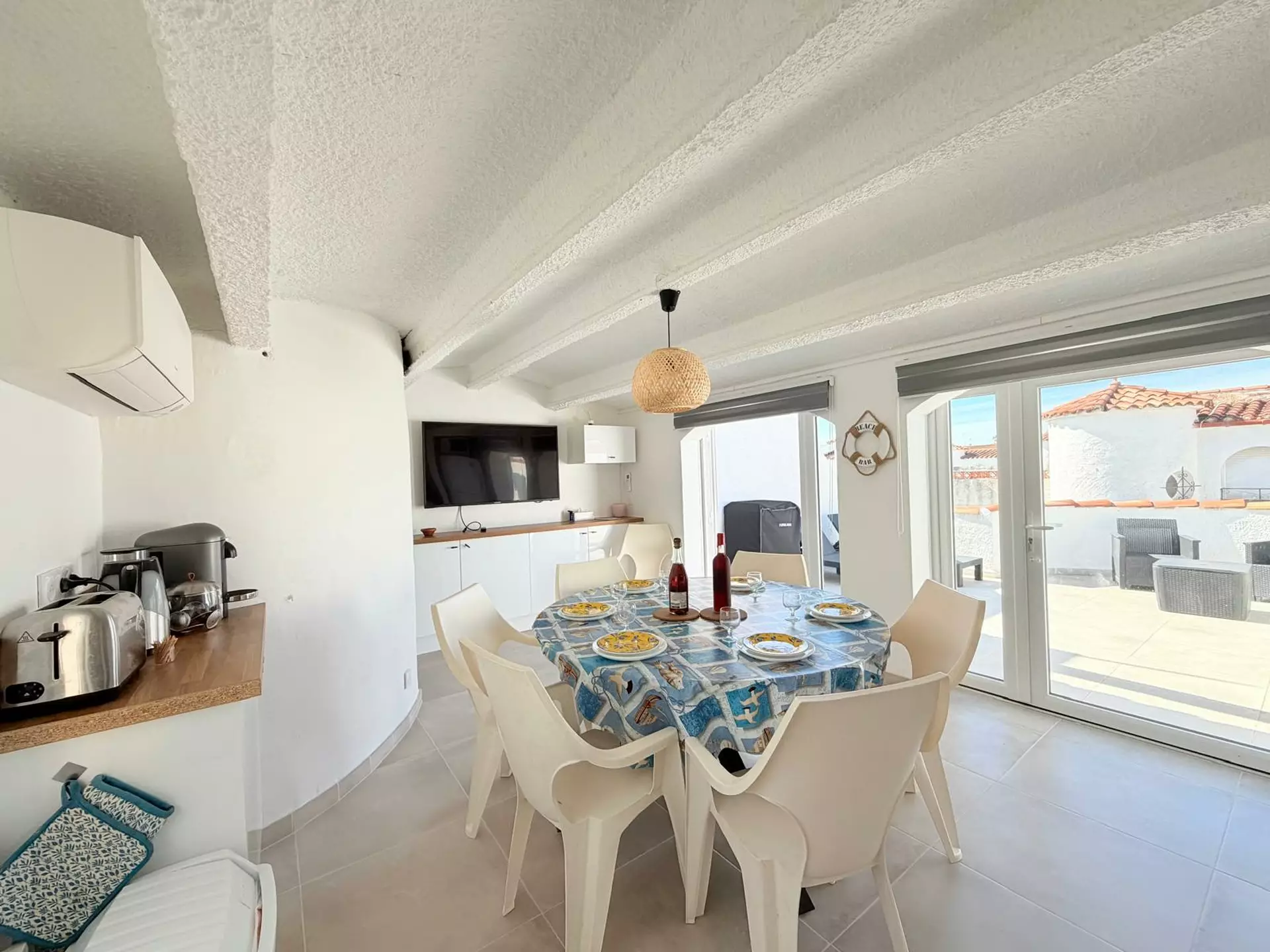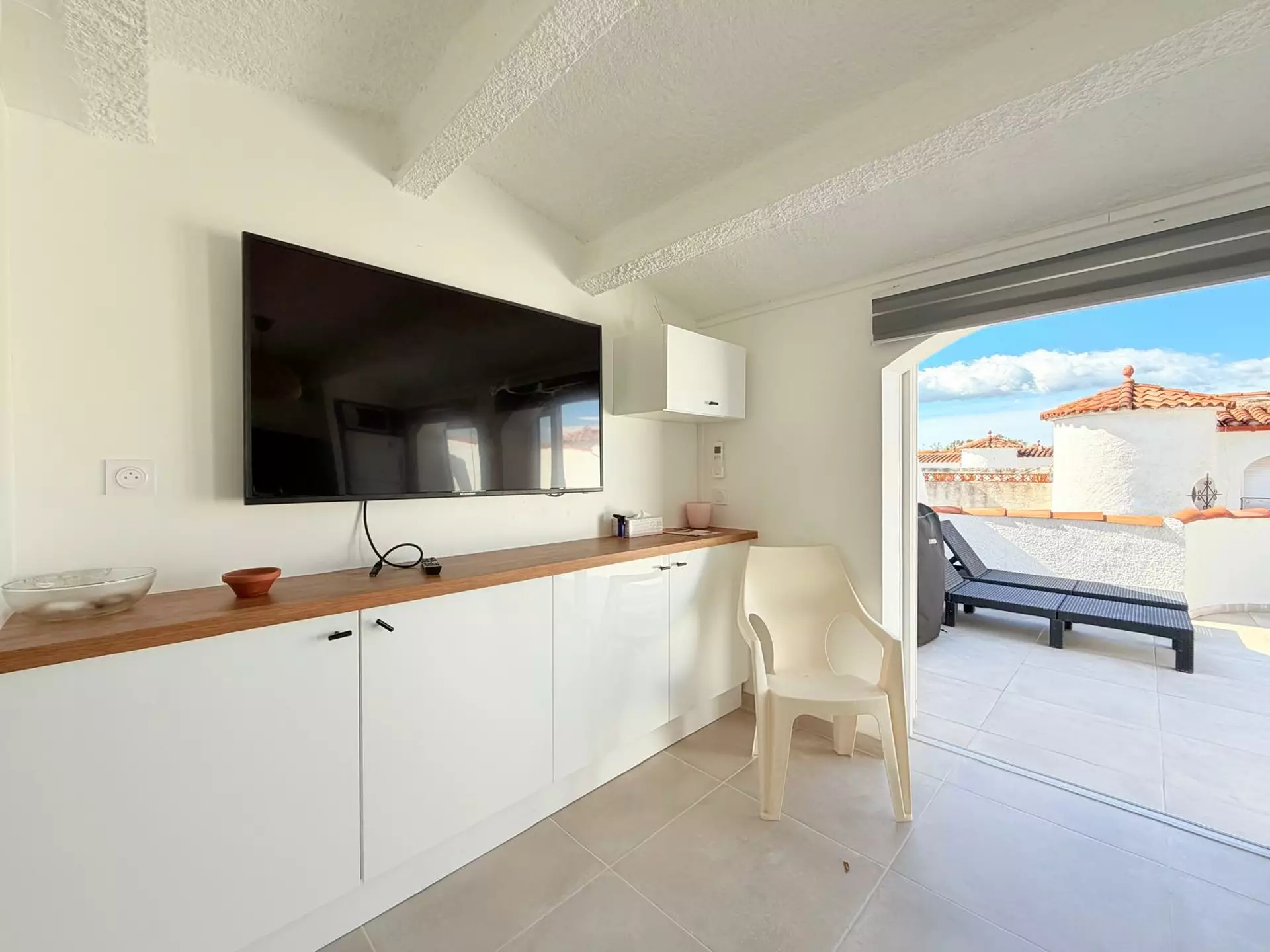 Le dernier niveau réserve une agréable surprise avec une pièce de vie additionnelle intégrant une salle à manger et une cuisine neuve entièrement équipée. Cet espace s’ouvre directement sur une vaste terrasse exposée plein sud, idéale pour profiter du soleil, organiser des repas en extérieur ou simplement admirer l’environnement.