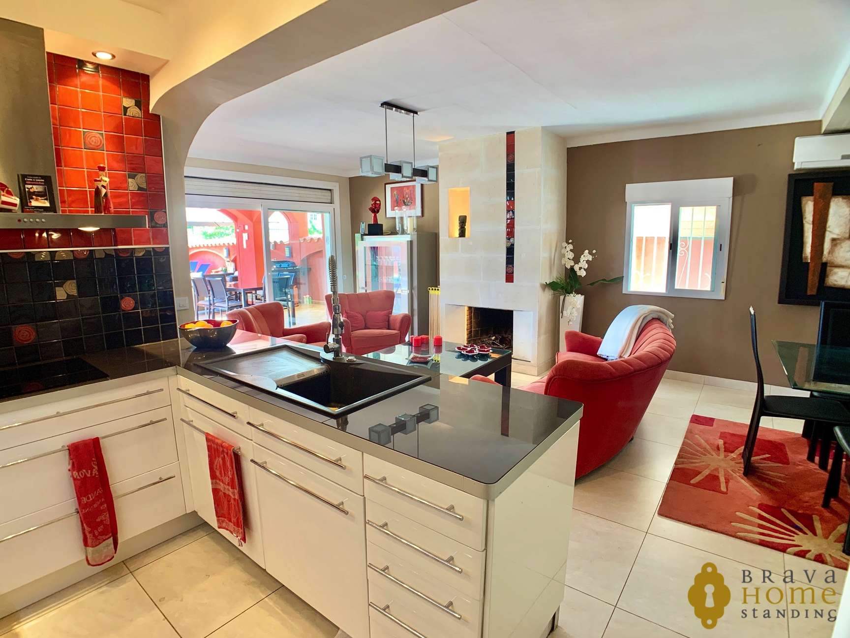 Magnifique villa avec amarre et orientation sud à vendre à Empuriabrava (Costa Brava).D'une superficie construite de 242m2 sur une parcelle de 500m2, cette belle maison se compose de :