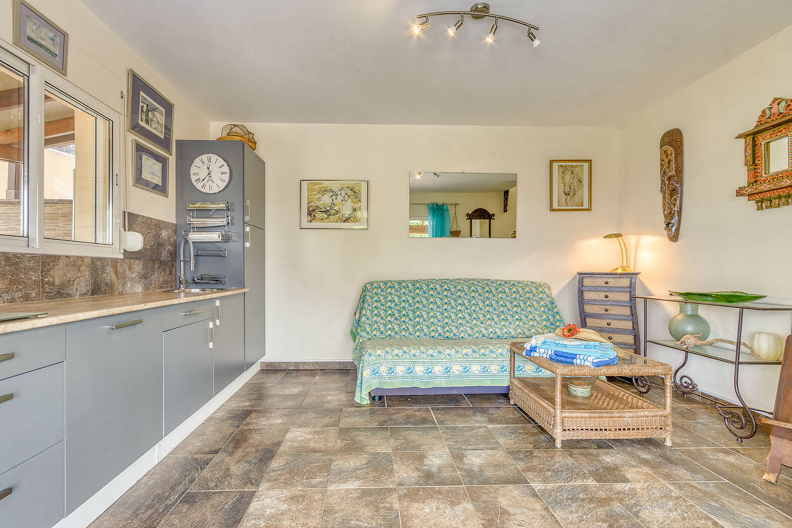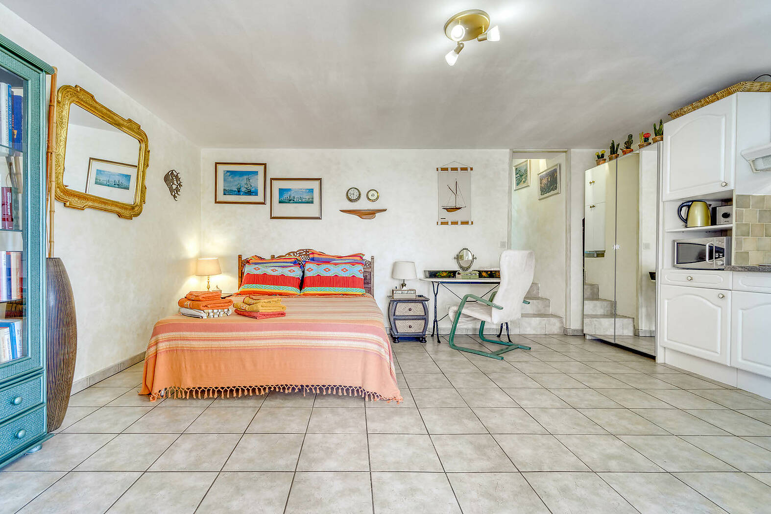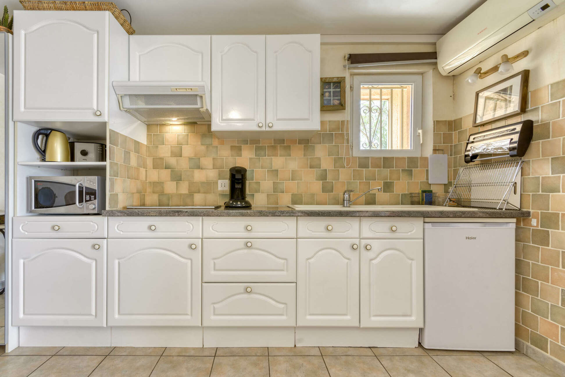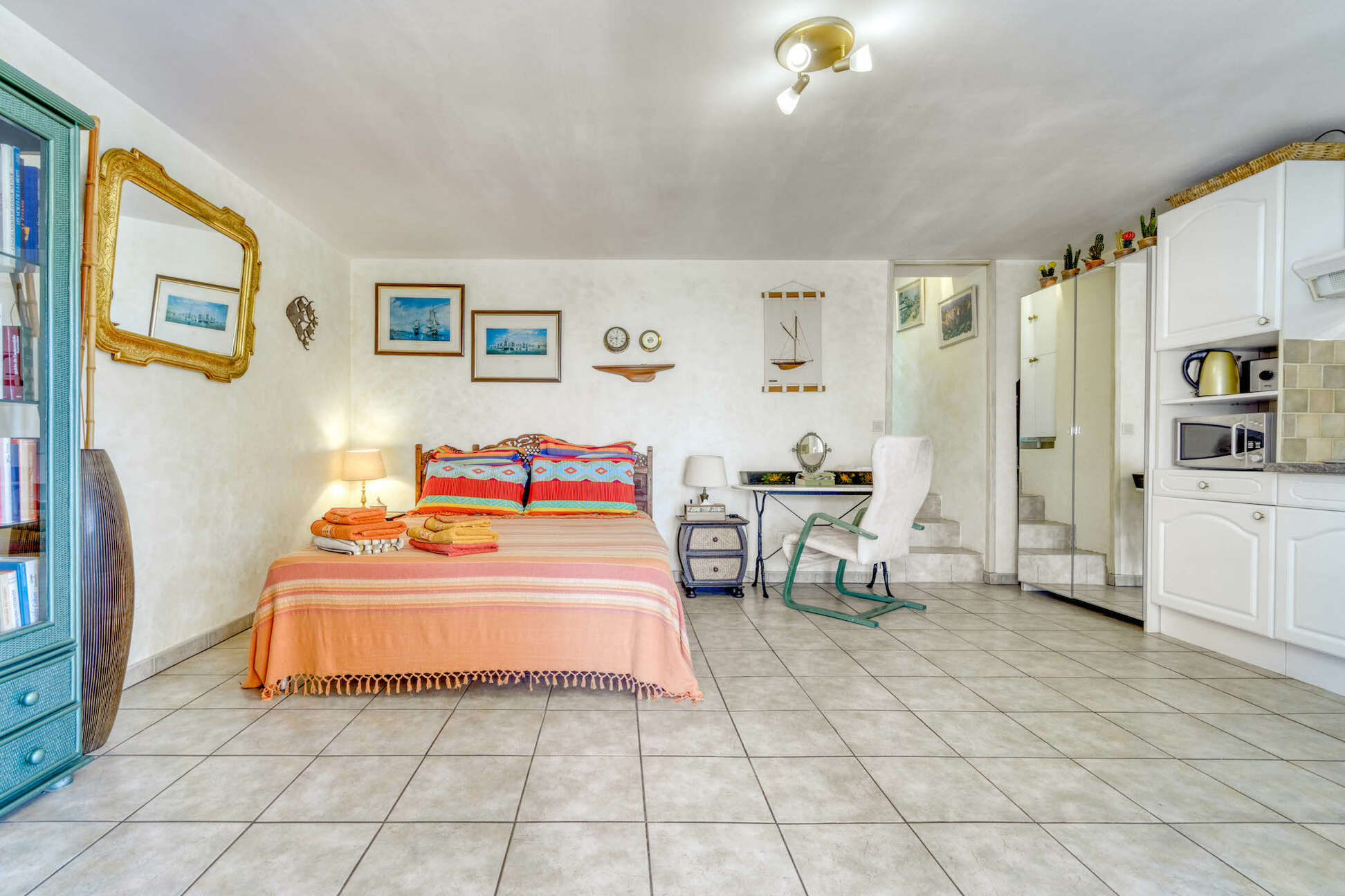 A l‘étage inférieur (rez-de-jardin): studio indépendant avec cuisine et salle de bain avec douche, pour amis ou pour location; terrasse-porche privée avec vue sur la mer; cuisine-salle à manger d‘été avec accès direct à la piscine; salle à manger extérieure indépendante, couverte; grand débarras.