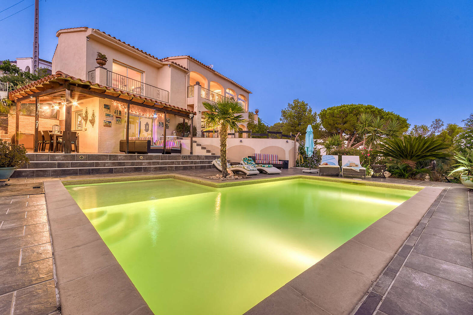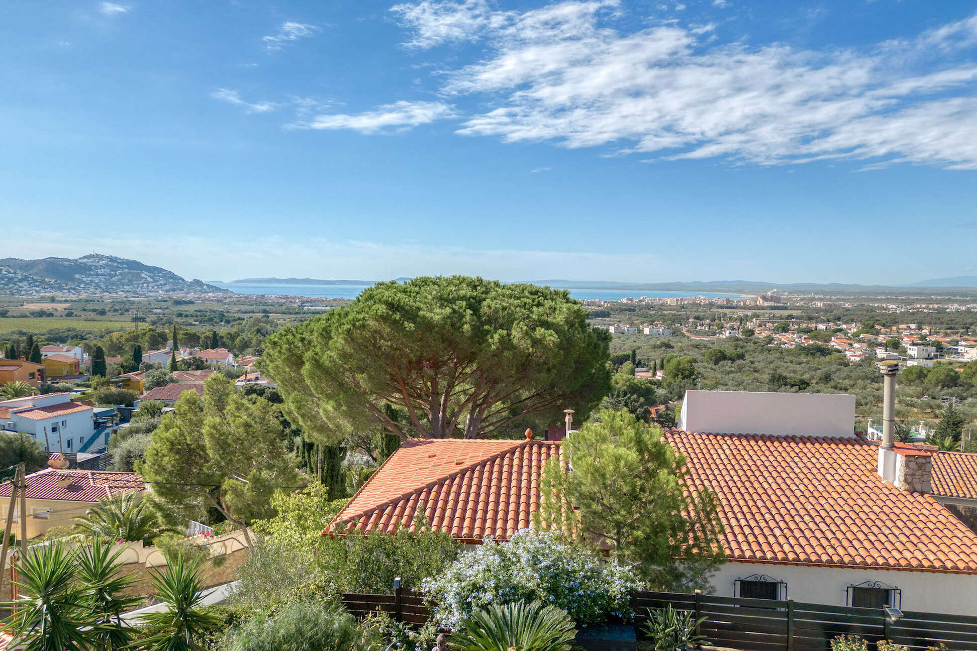 Élégante villa avec vue mer panoramique imprenable à Rosas. Située dans une zone résidentielle tranquille, a 5 minutes en voiture du centre de Rosas et de la plage.