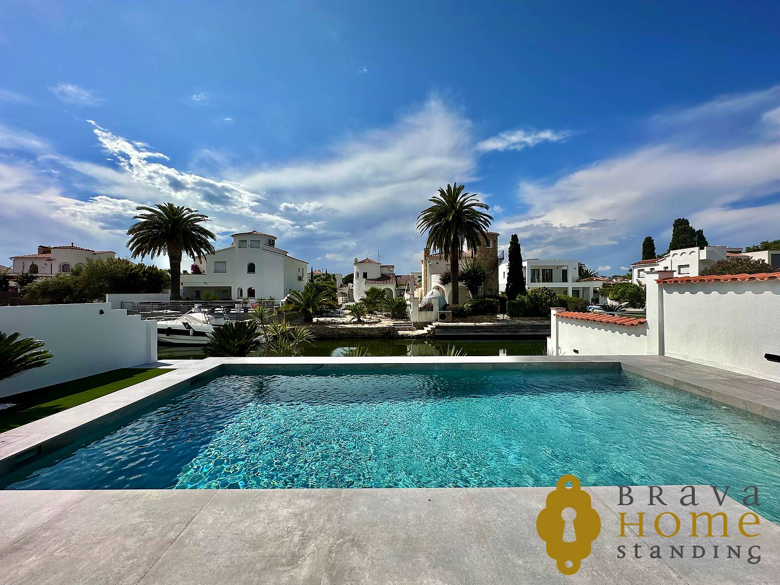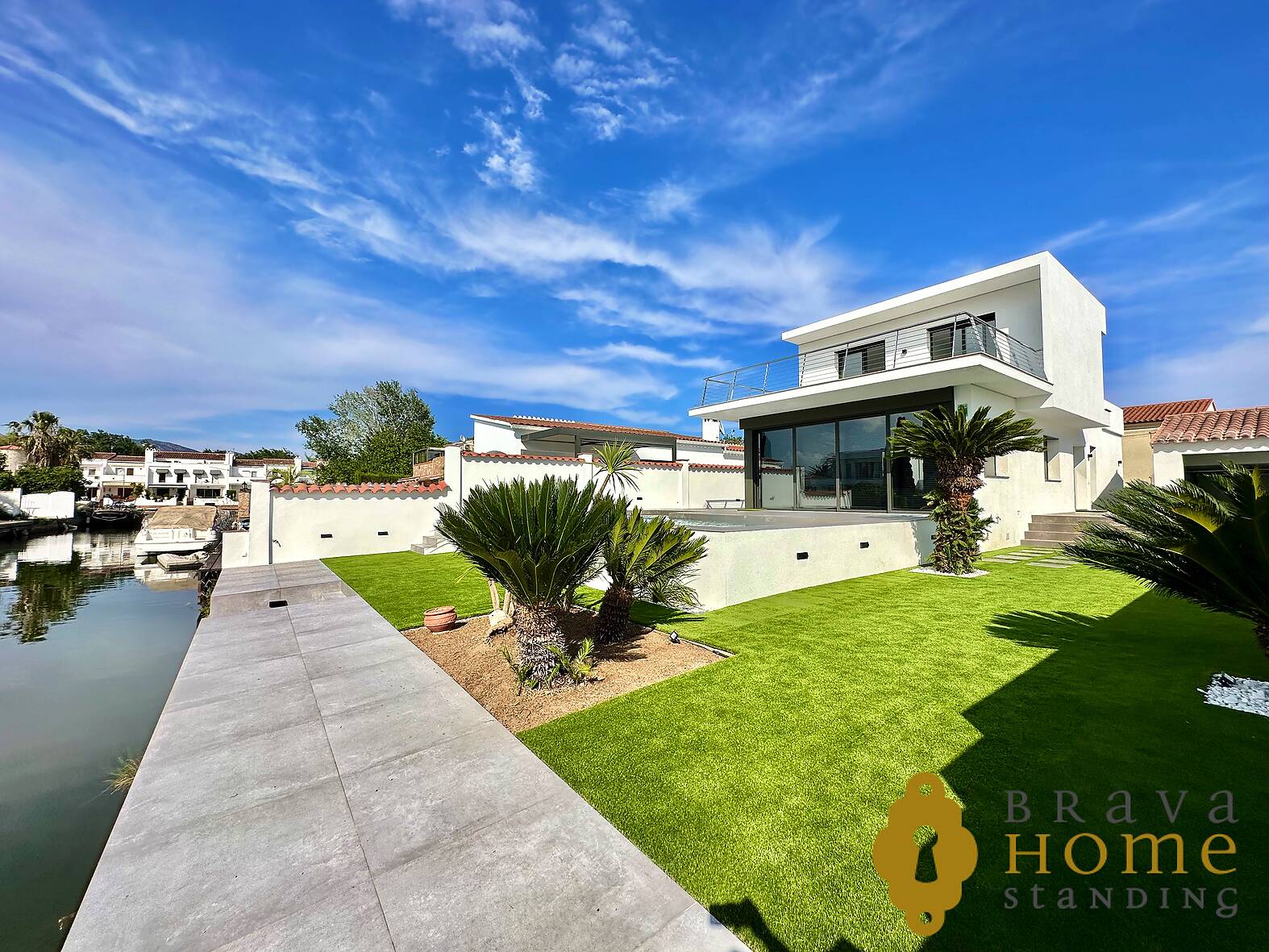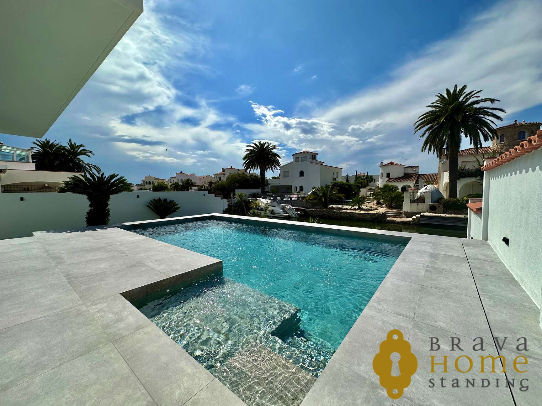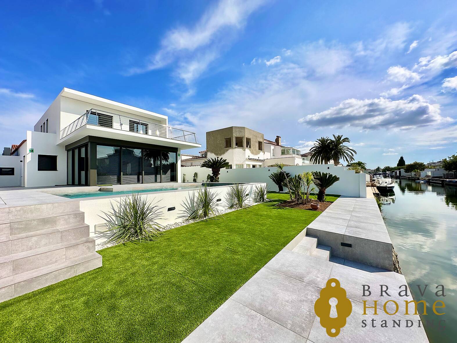 Fantástica casa individual de nueva construcción con piscina y amarre de 14,50m en venta en Empuriabrava (Costa Brava).