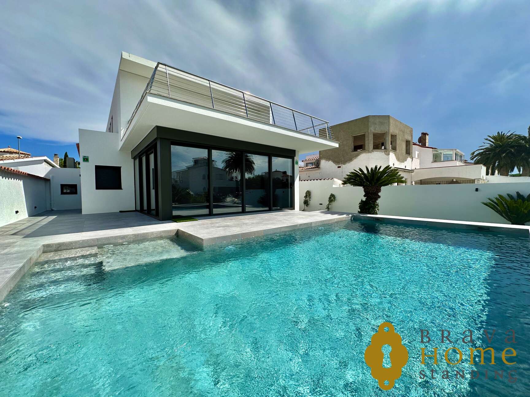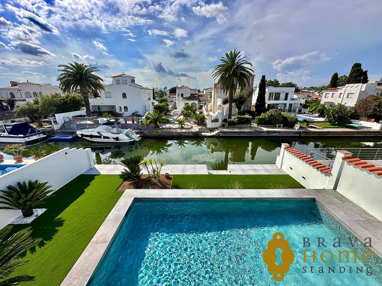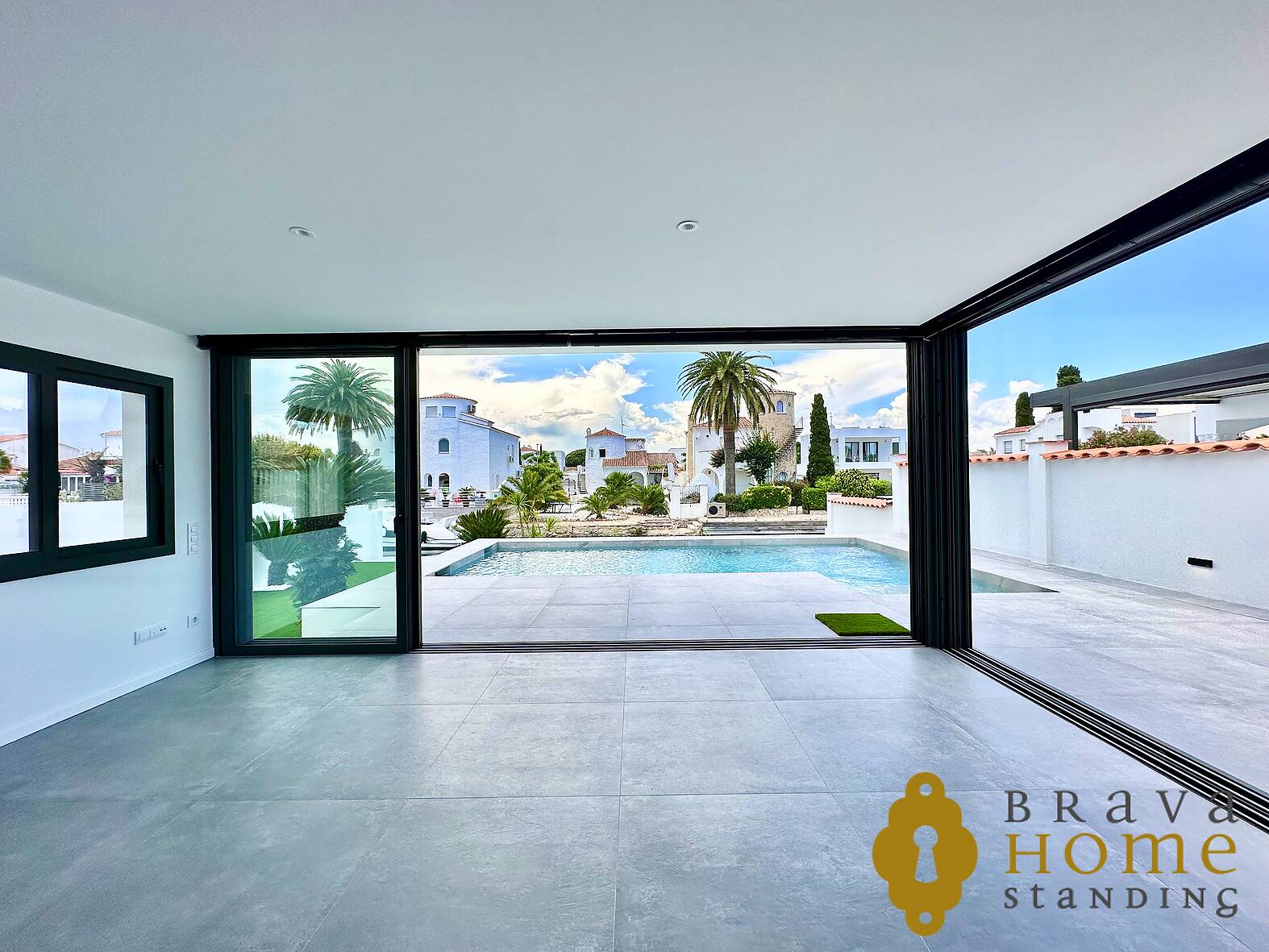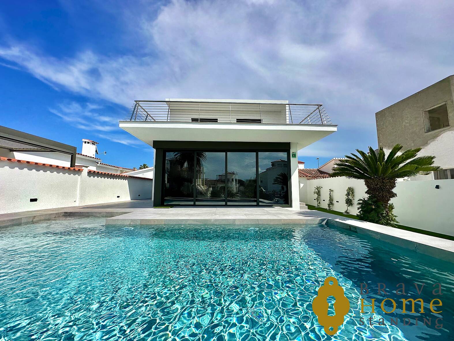 Fantástica casa individual de nueva construcción con piscina y amarre de 14,50m en venta en Empuriabrava (Costa Brava).