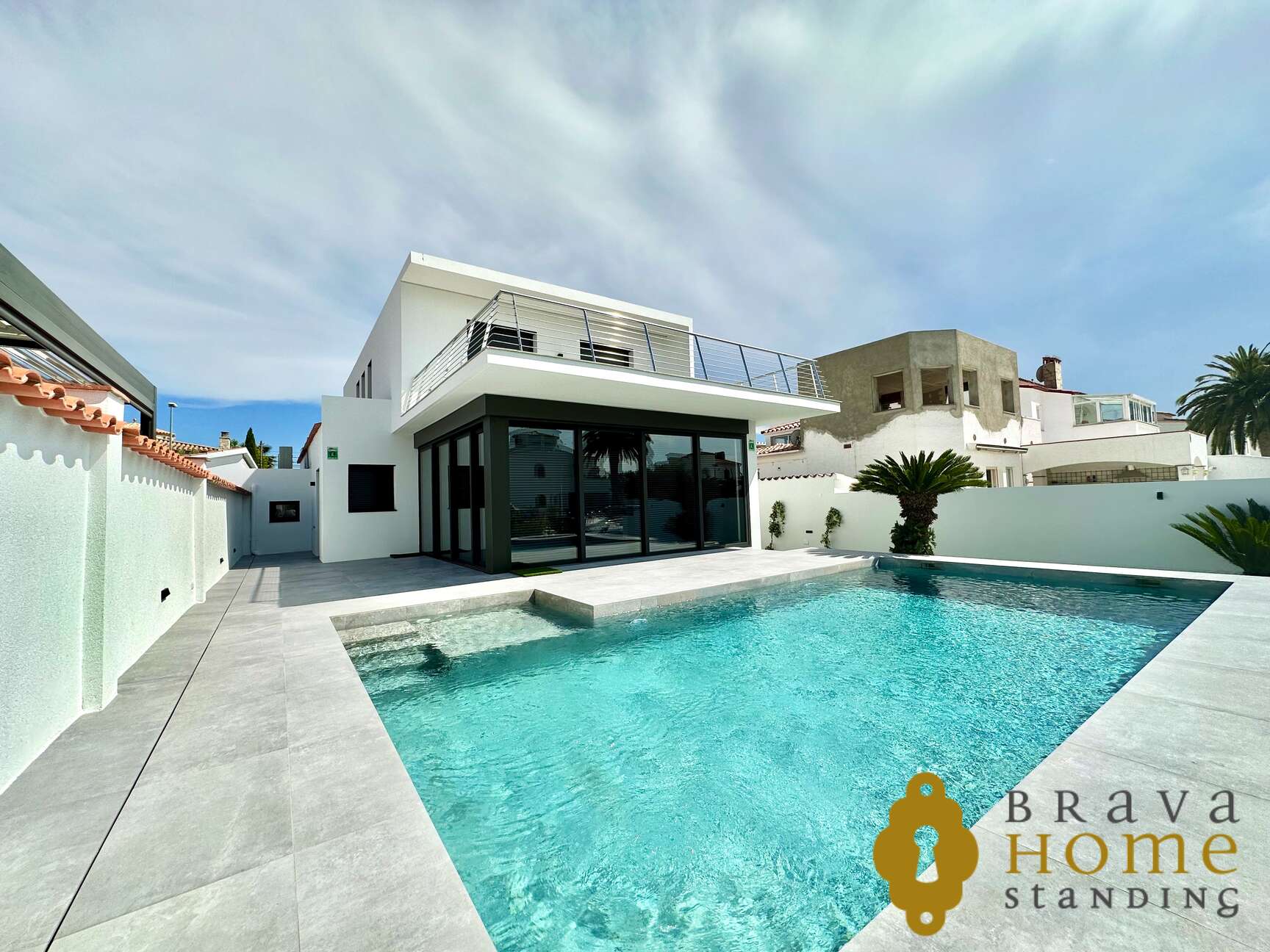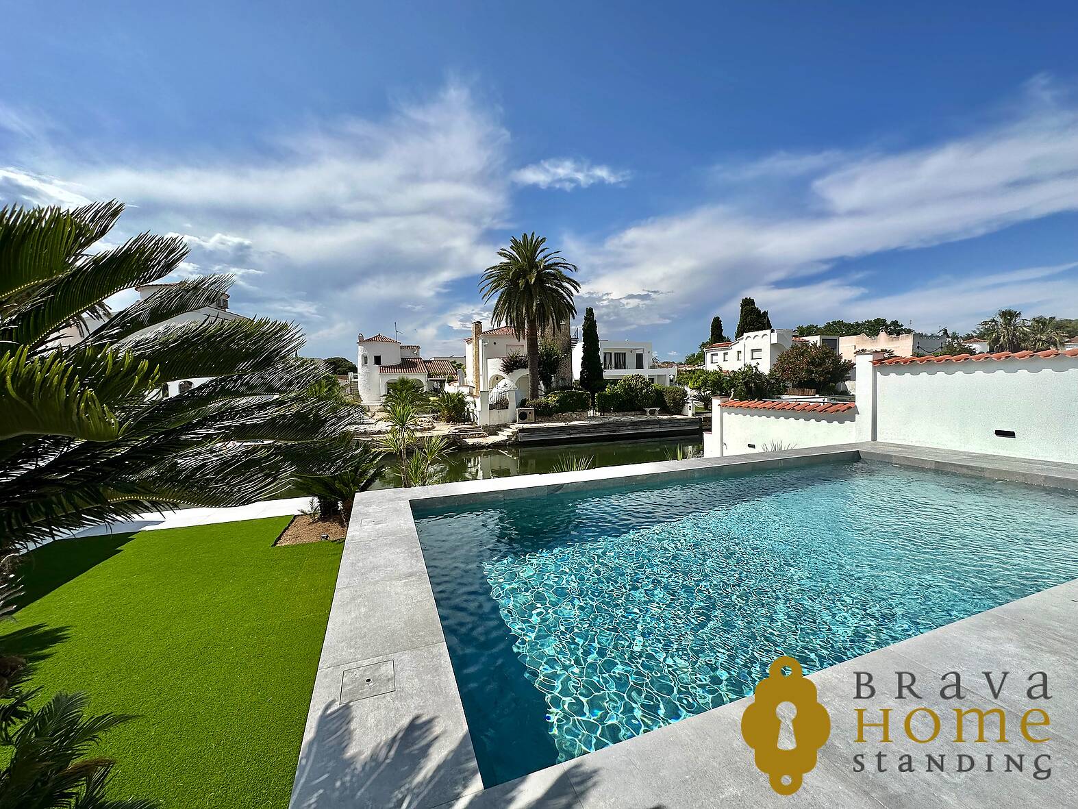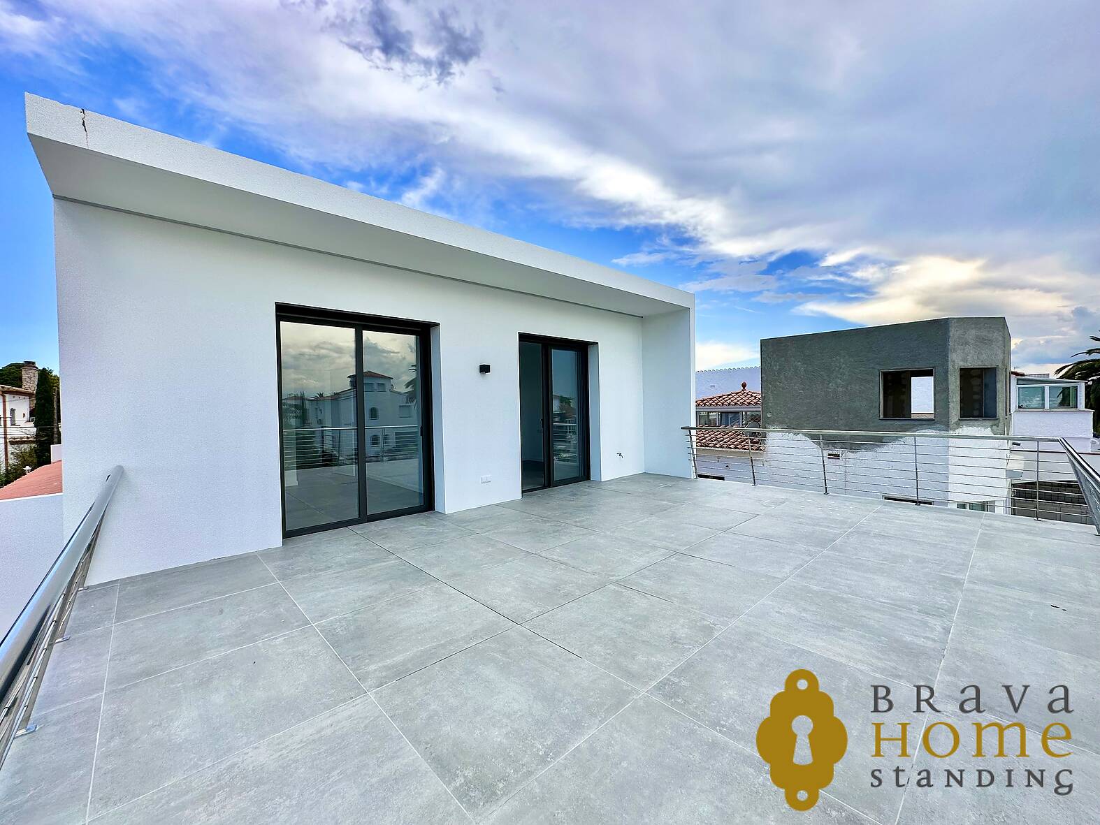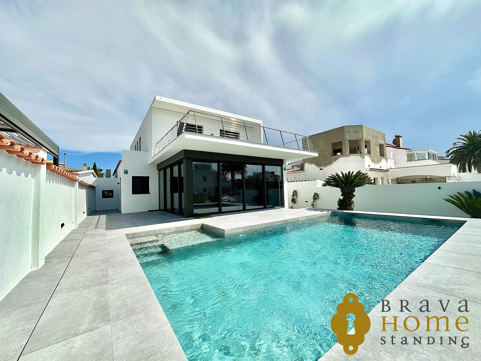 Fantástica casa individual de nueva construcción con piscina y amarre de 14,50m en venta en Empuriabrava (Costa Brava).
