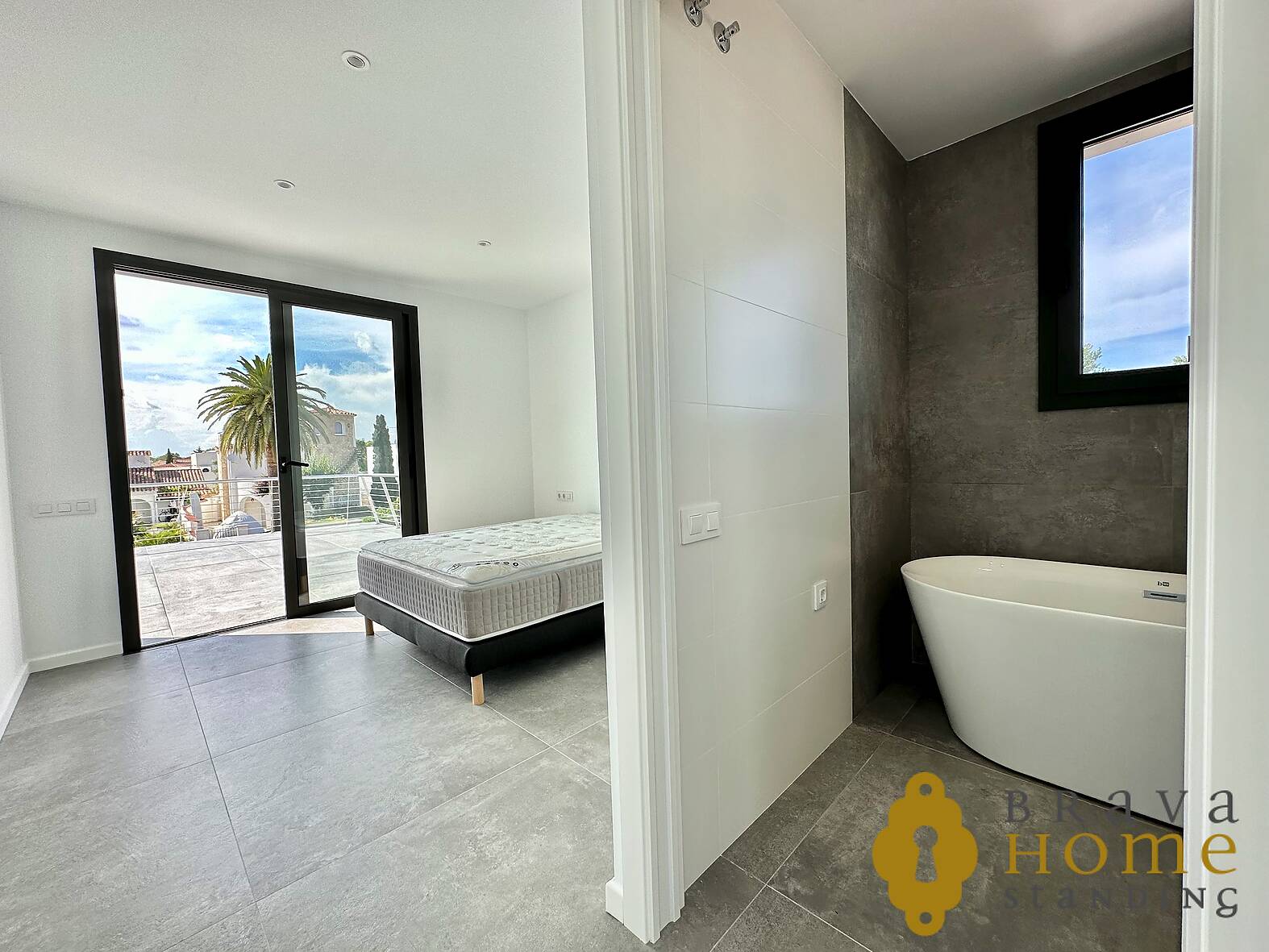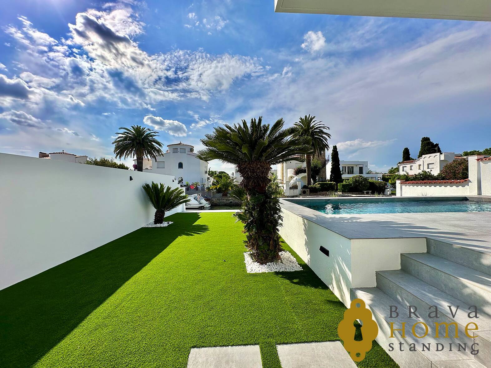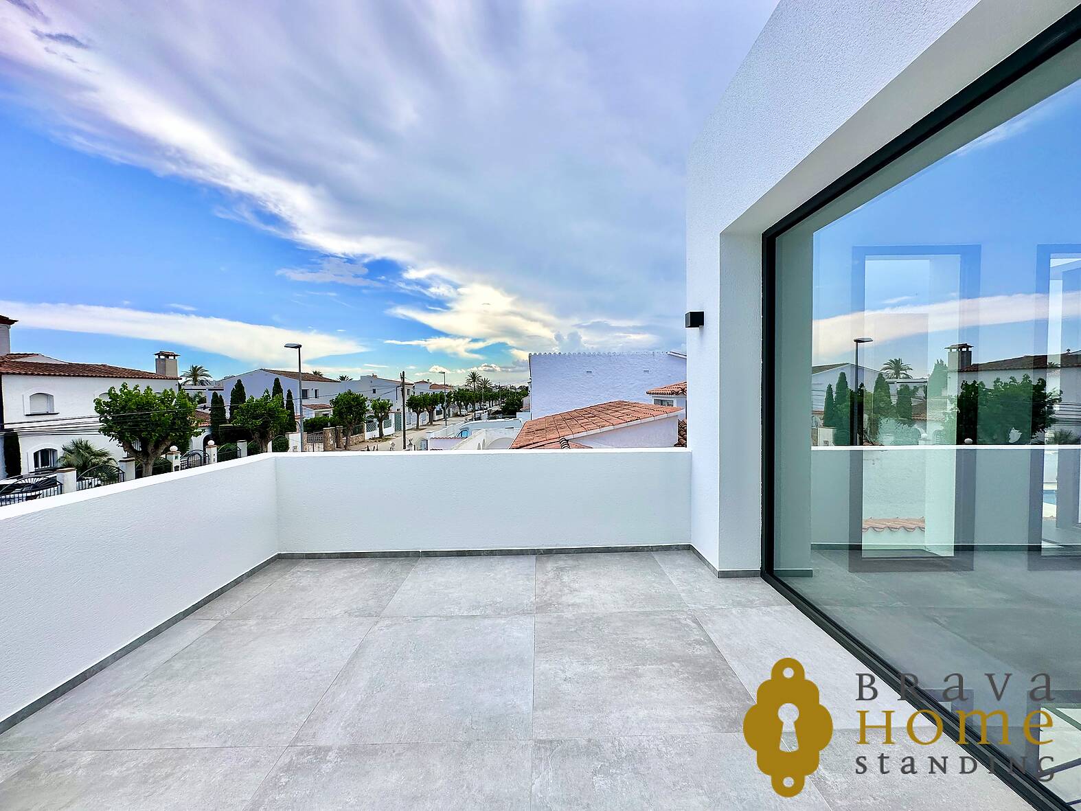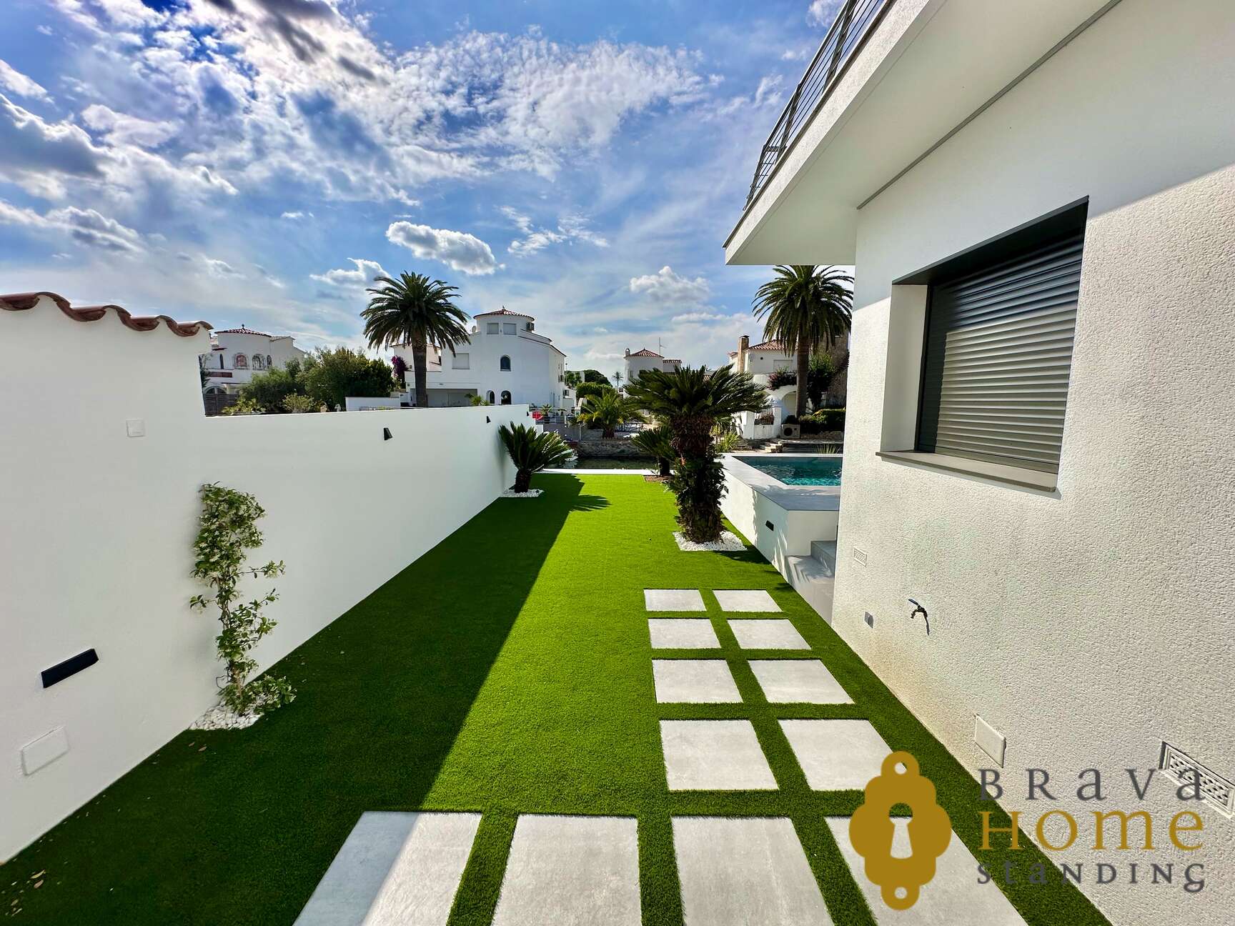 Fantástica casa individual de nueva construcción con piscina y amarre de 14,50m en venta en Empuriabrava (Costa Brava).