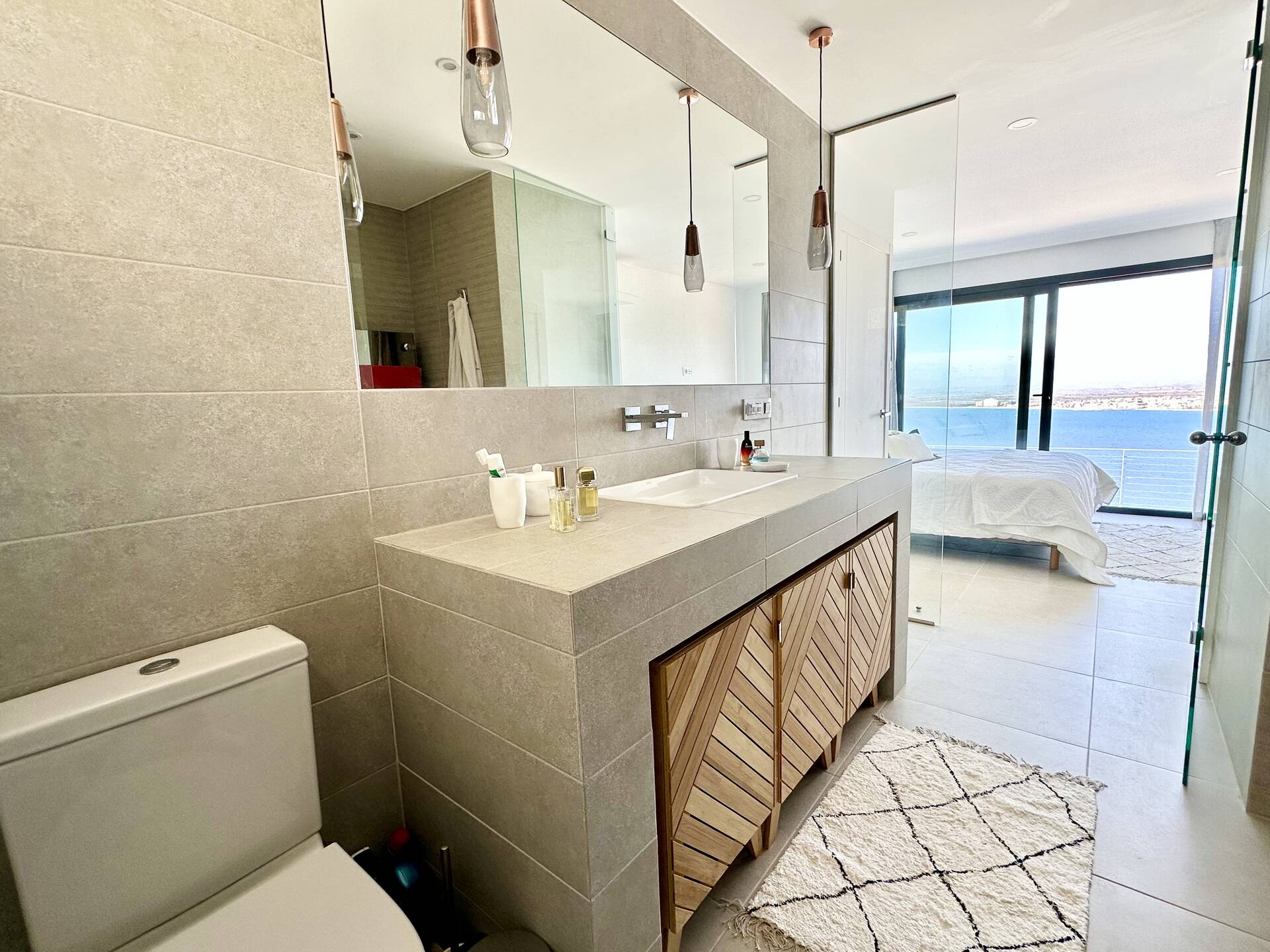 En la planta superior hay 2 dormitorios en suites, todos con vistas al mar y acceso a una terraza
