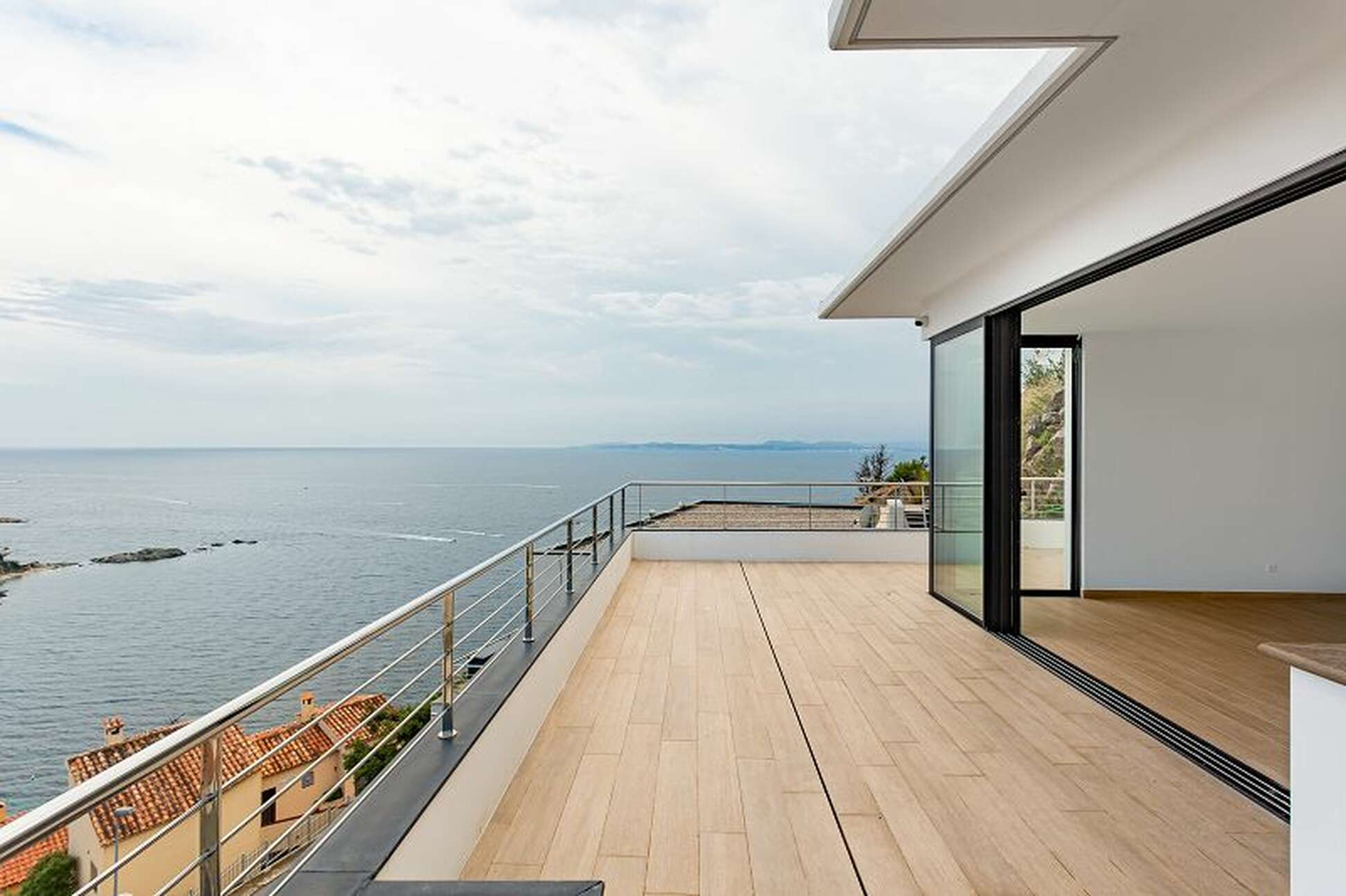 -En el segundo nivel, un cuarto dormitorio tipo suite, un aseo independiente, y amplia una sala de estar de más de 45m2 con su cocina americana totalmente equipada. El salon está bañado de luz gracias a los grandes ventanales con vistas al mar.