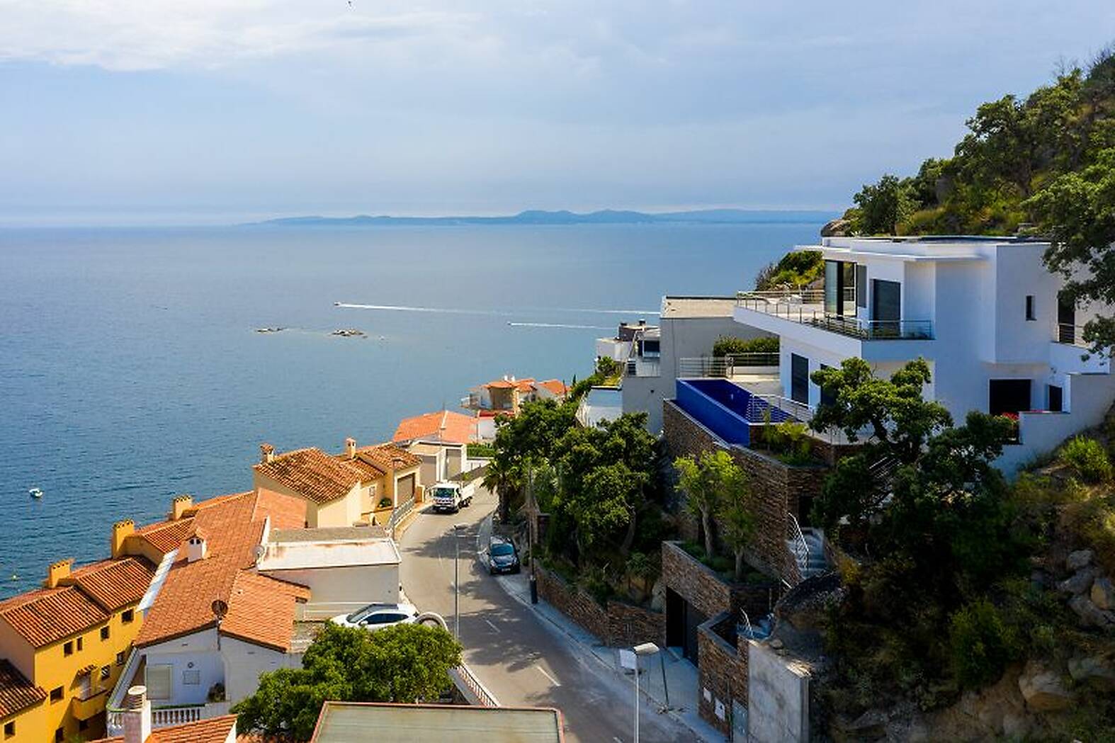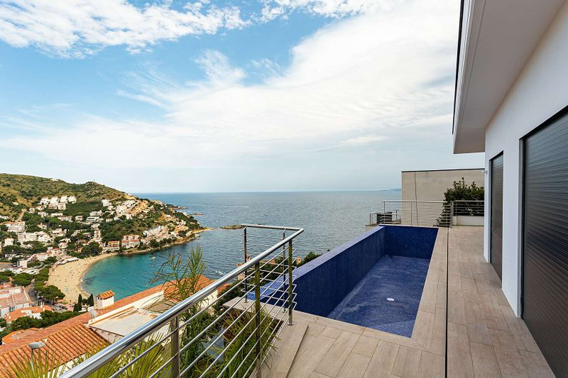 Casa de diseño con vistas al mar en venta en Rosas - Canyelles (Costa Brava).En Canyelles, con unas magníficas vistas al mar y a la Bahía de Roses, le ofrecemos esta preciosa casa nueva de 342m2, construida solo con materiales excepcionales.